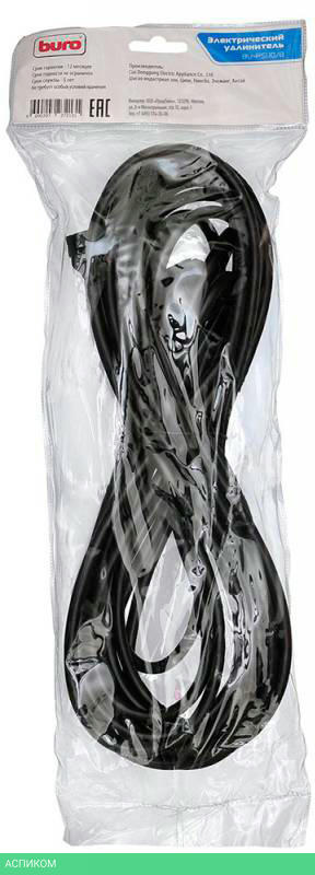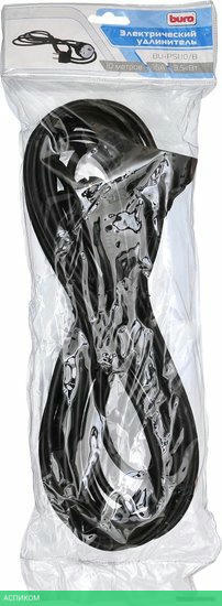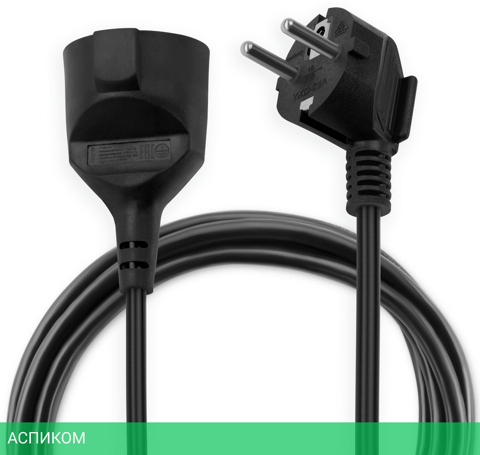 удлинитель / черный / 1 / 10.0 / Schuko (евро с заземлением) / Schuko (евро с заземлением) / нет / нет