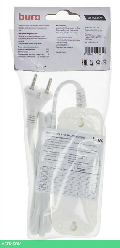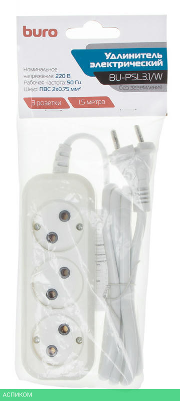 удлинитель / 3 / 1.5 / Schuko (евро без заземления) / белый / Schuko (евро без заземления) / нет / нет / нет