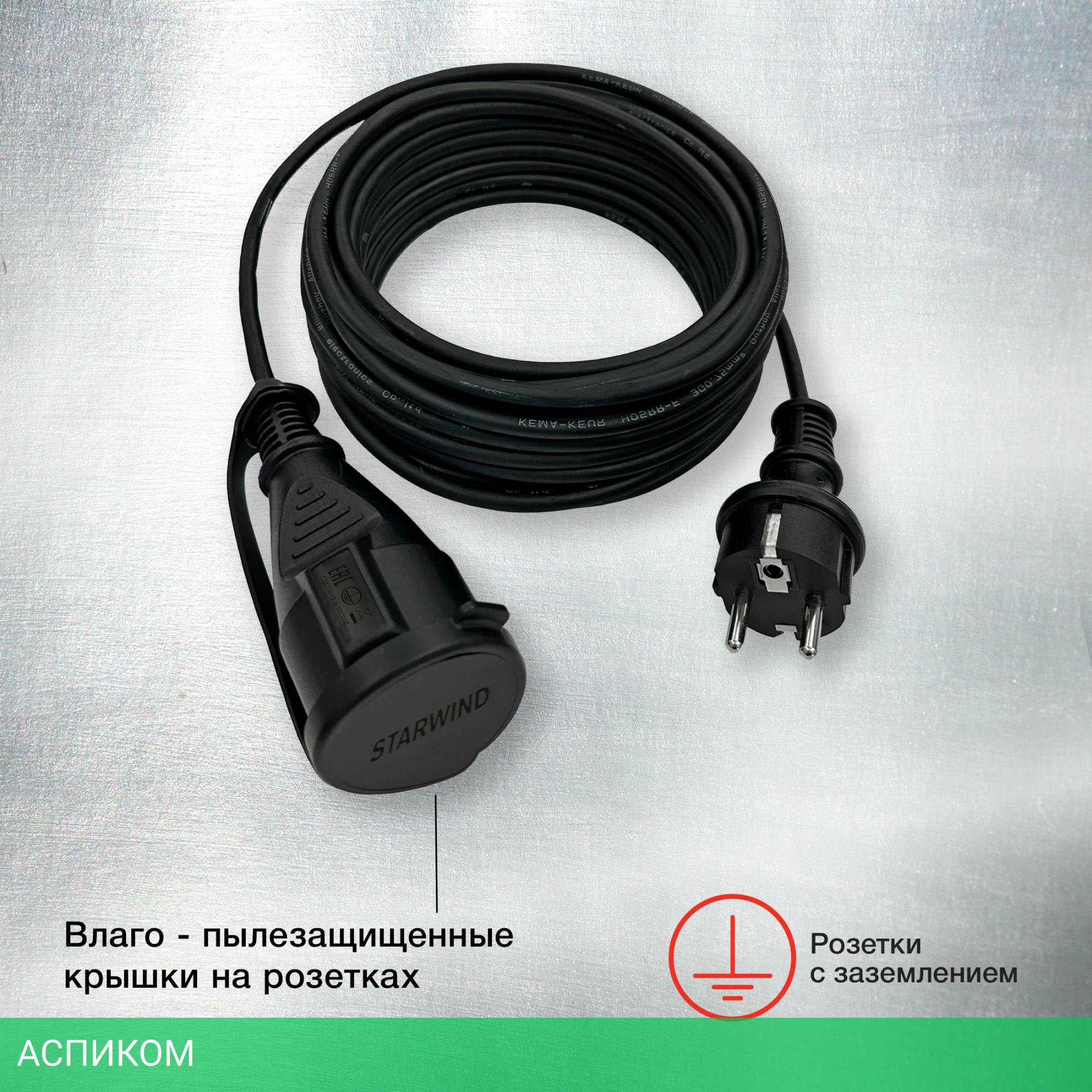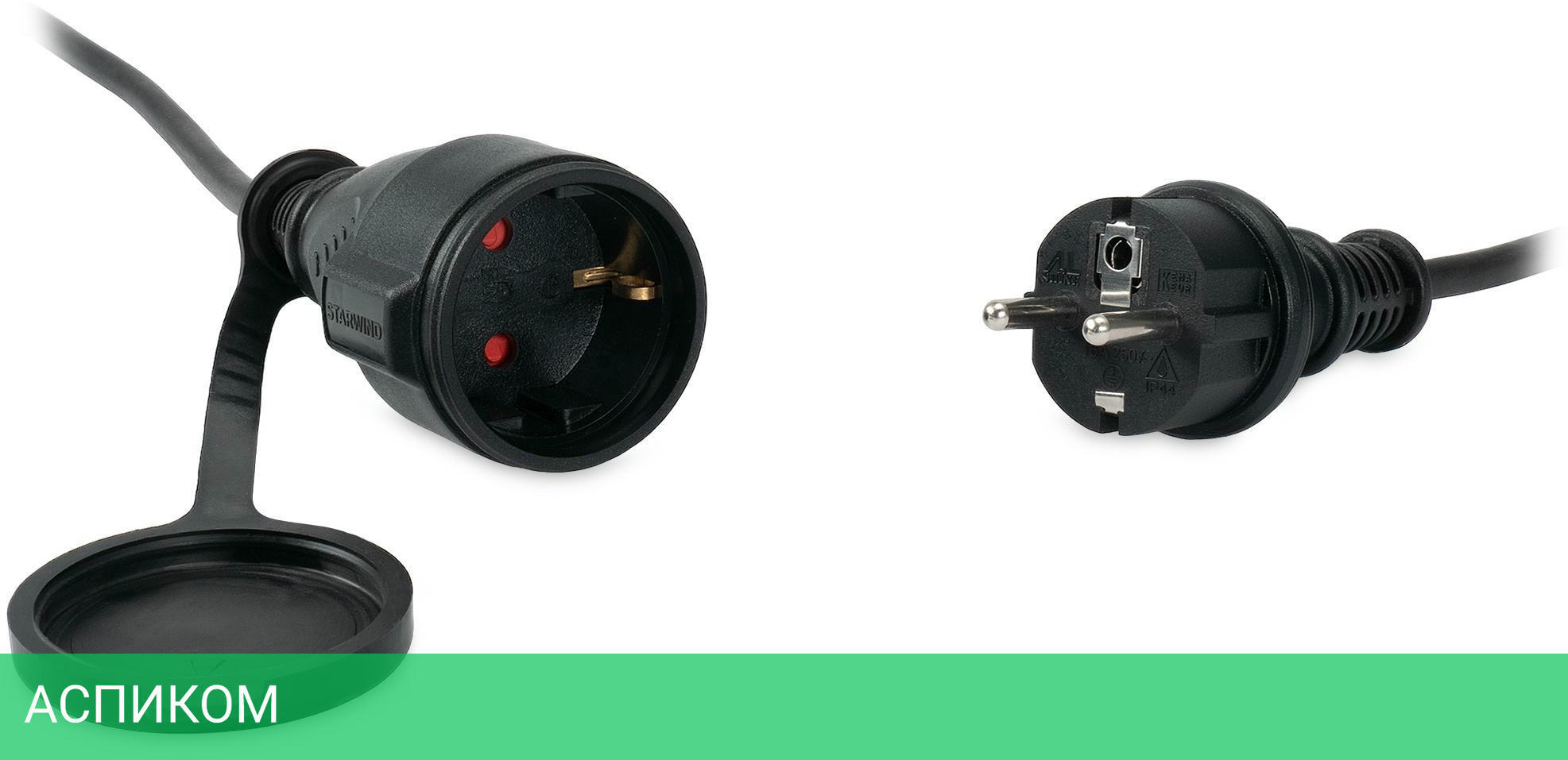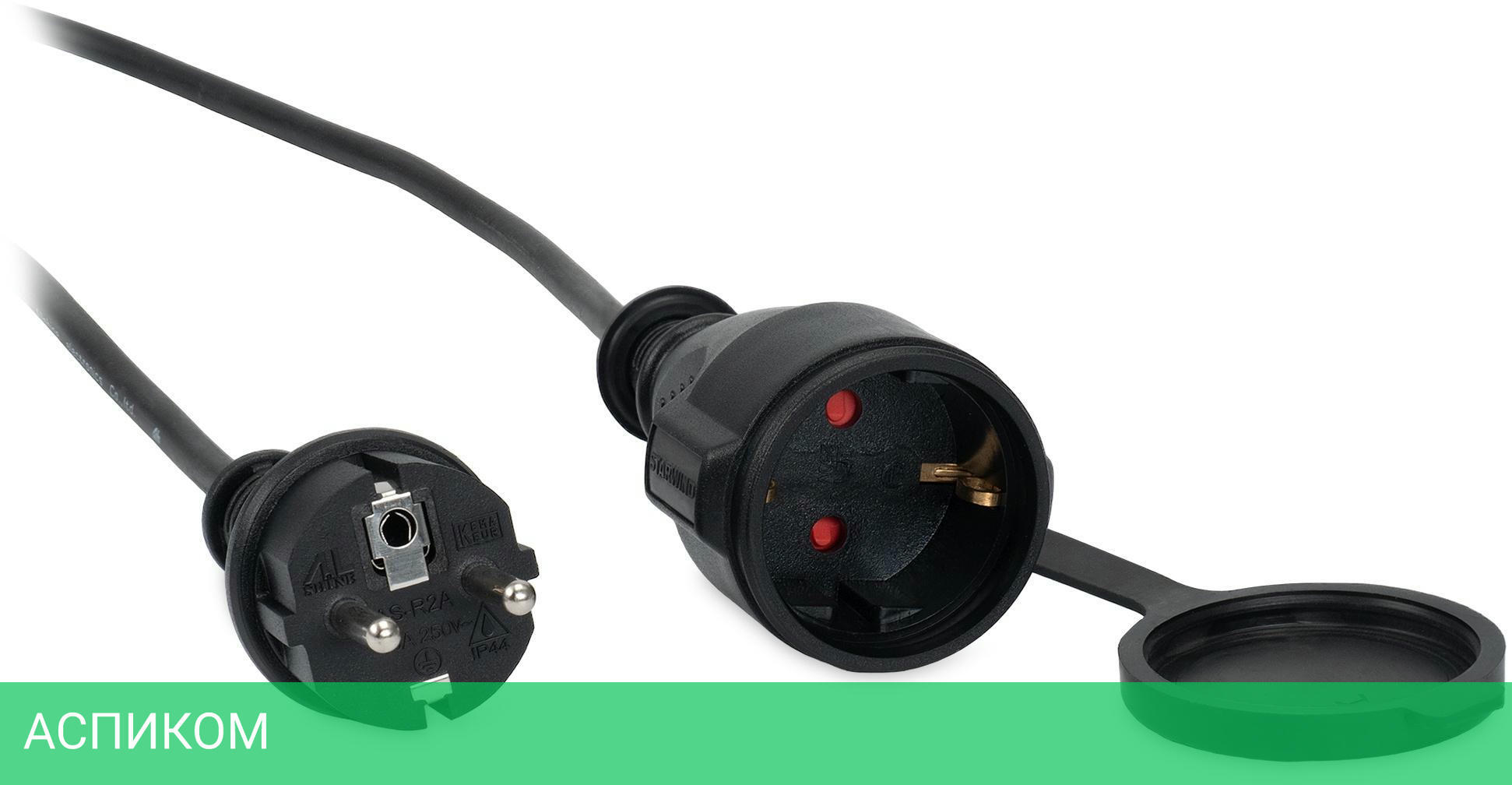 удлинитель / 1 / 20.0 / Schuko (евро с заземлением) / черный / Schuko (евро с заземлением) / нет / да / нет