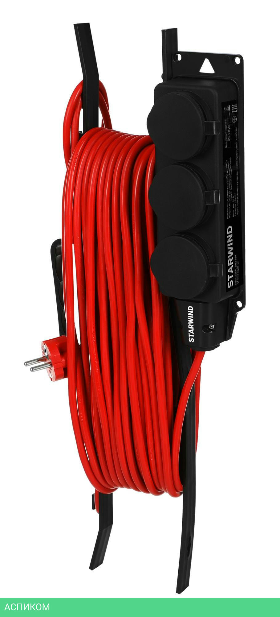 удлинитель / 3 / 20.0 / Schuko (евро с заземлением) / черный; красный / Schuko (евро с заземлением) / нет / да / нет