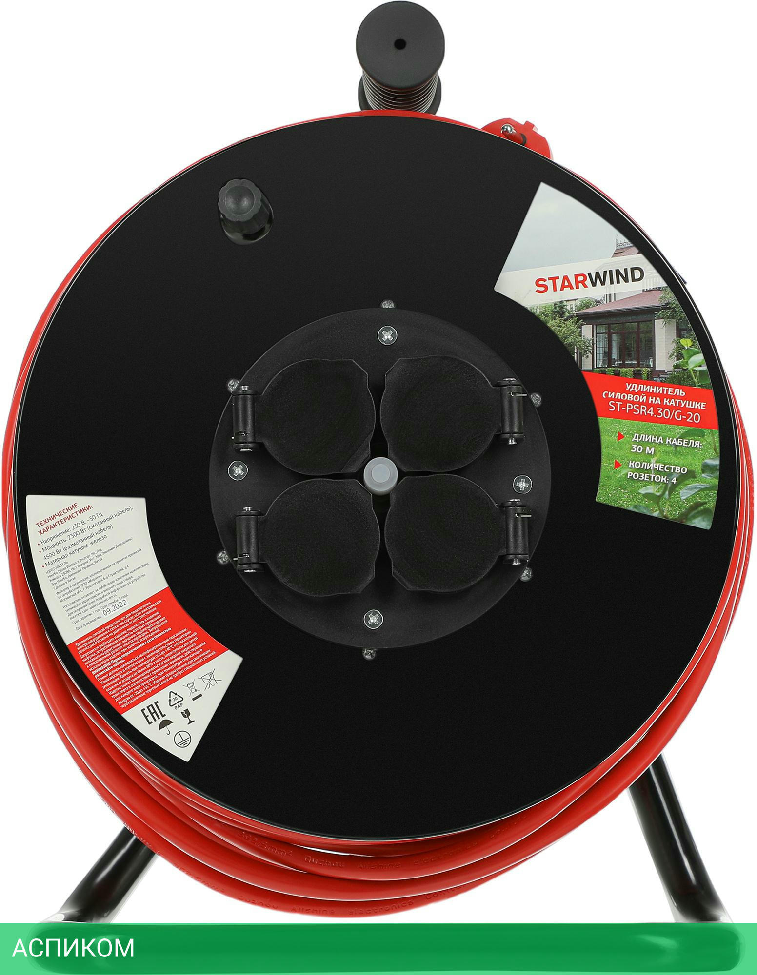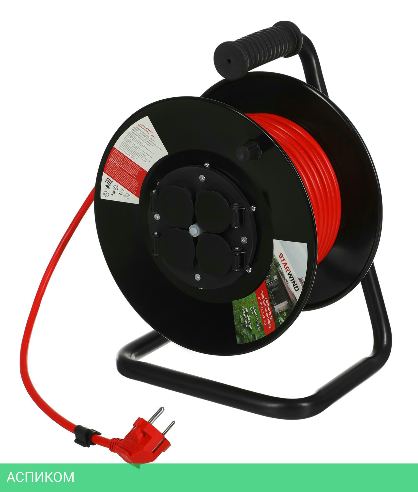 удлинитель / 4 / 30.0 / Schuko (евро с заземлением) / черный; красный / Schuko (евро с заземлением) / нет / да / нет