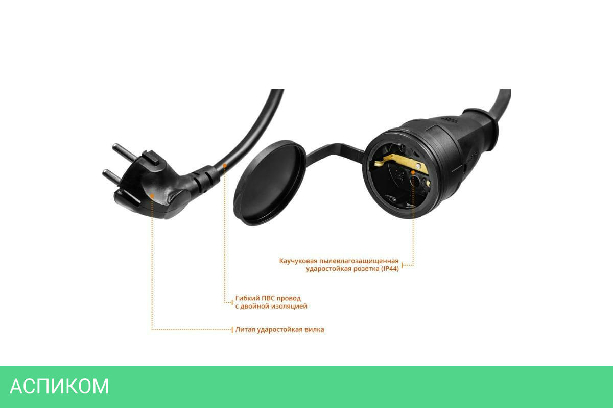 удлинитель / 1 / 30.0 / Schuko (евро с заземлением) / черный / Schuko (евро с заземлением) / нет / да / нет