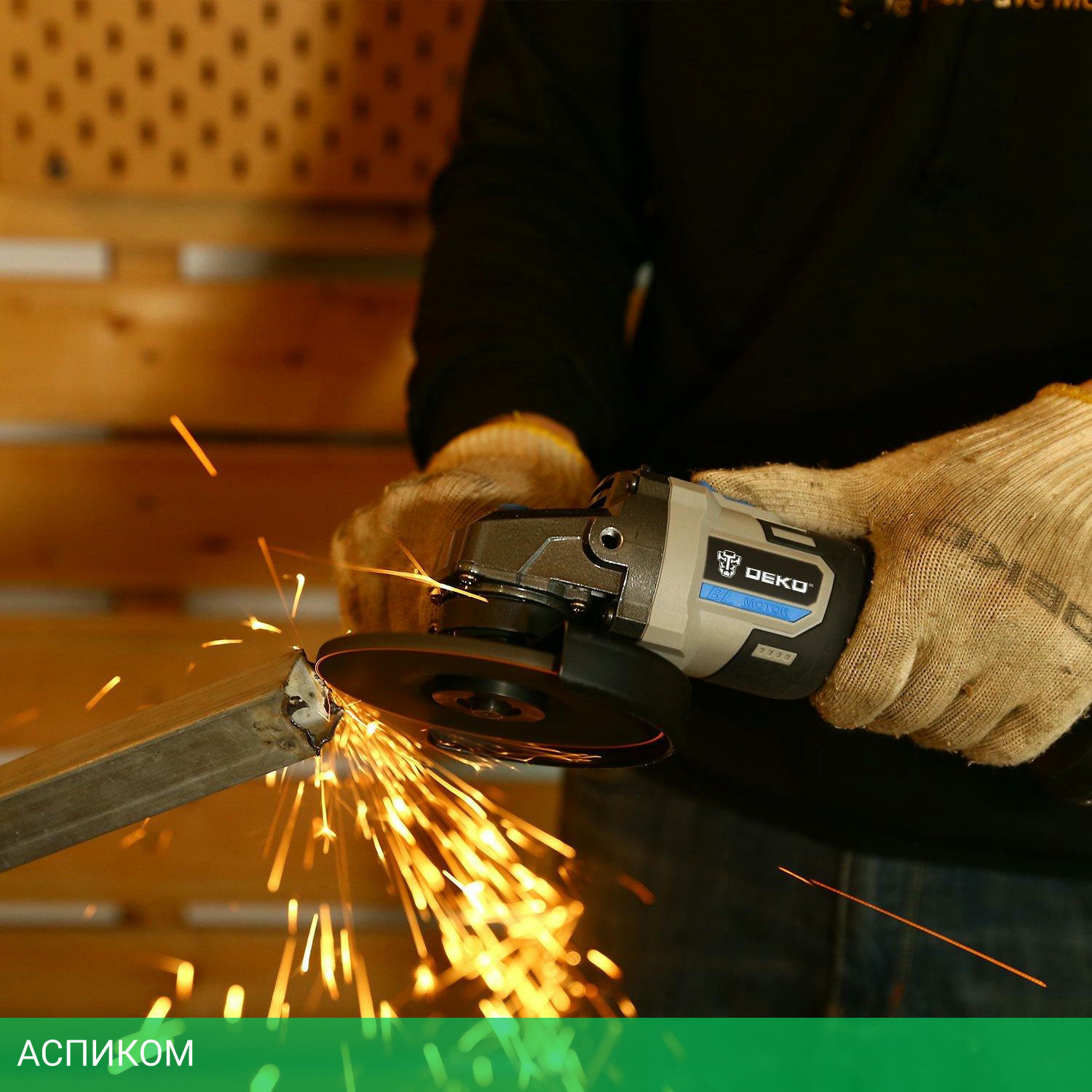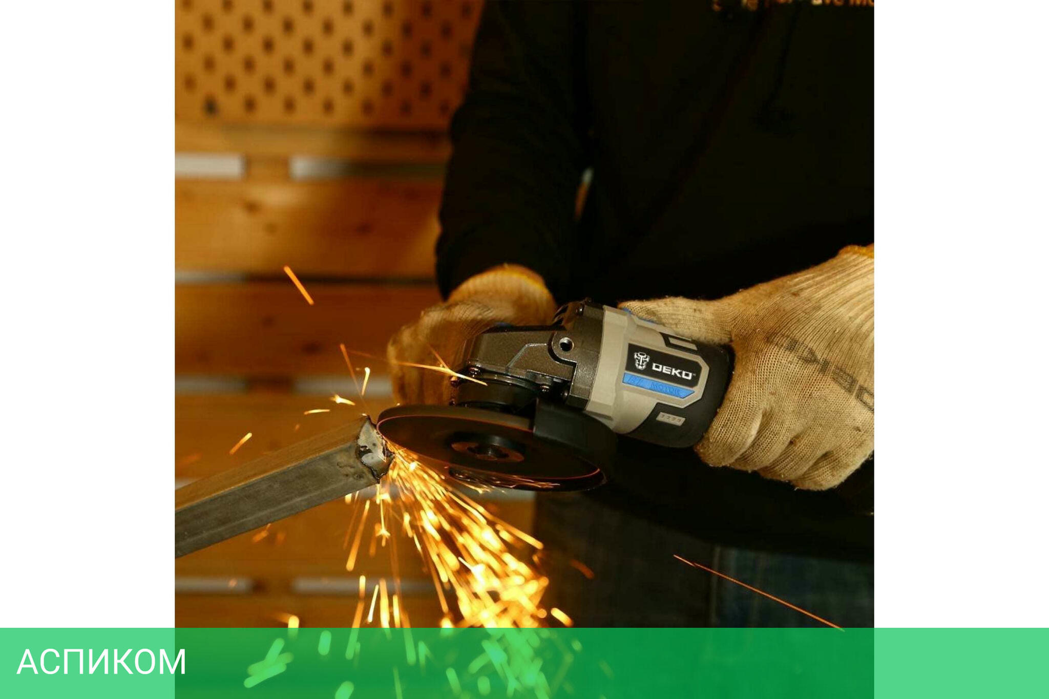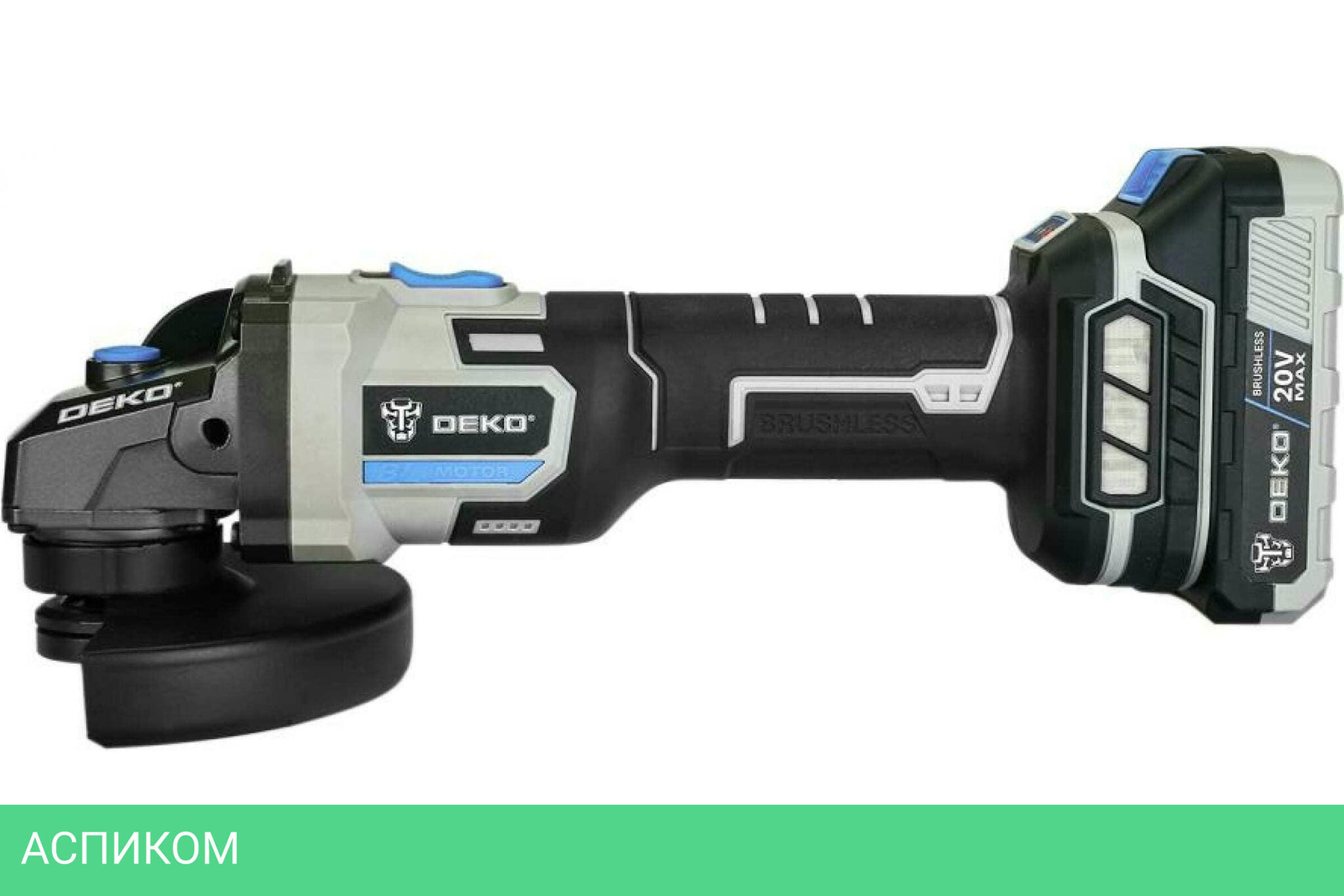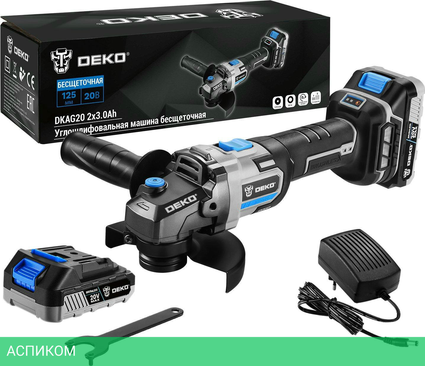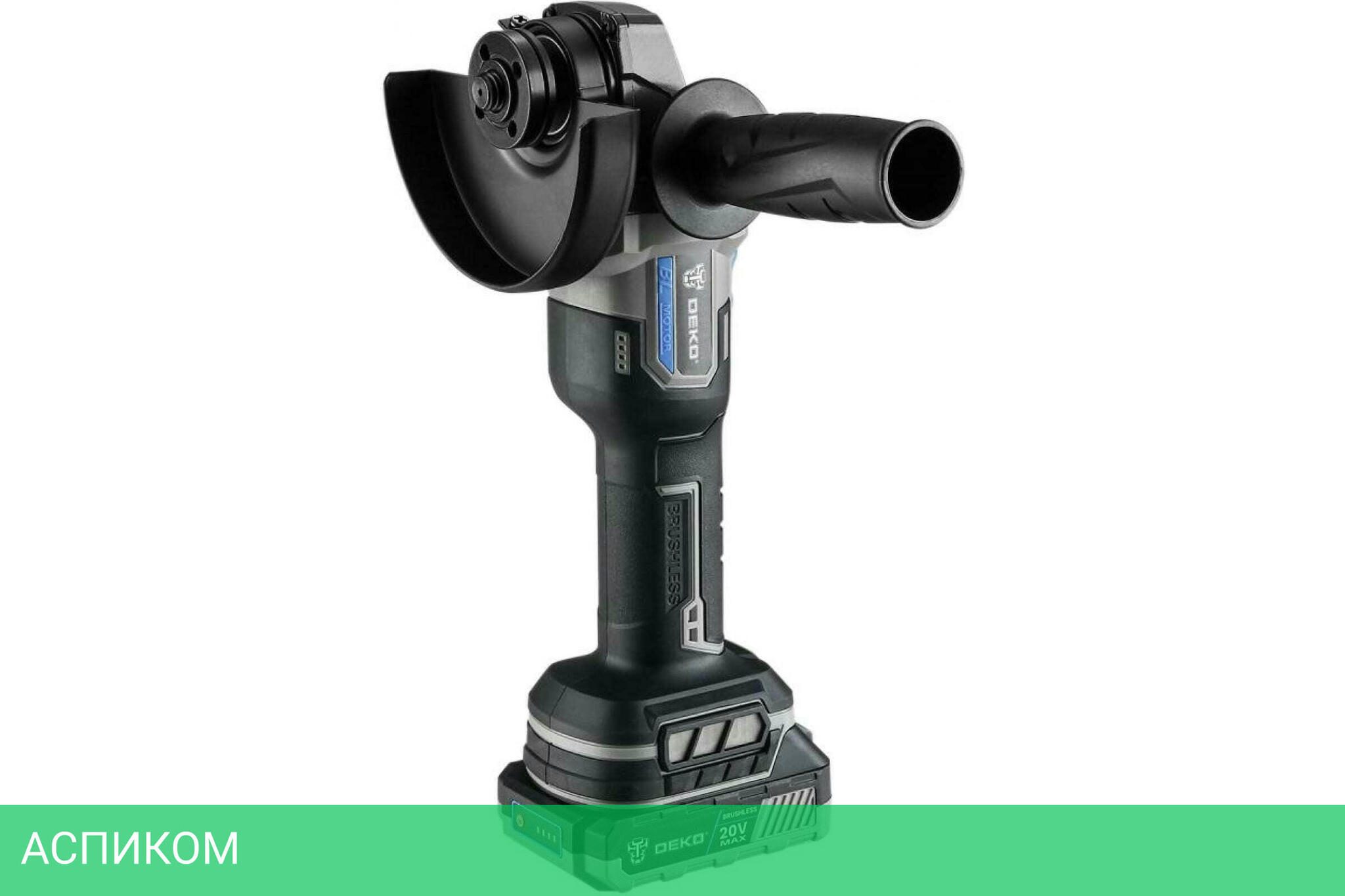 Углошлифовальная машина, аккумулятор - 2 шт., зарядное устройство, гаечный ключ, коробка.