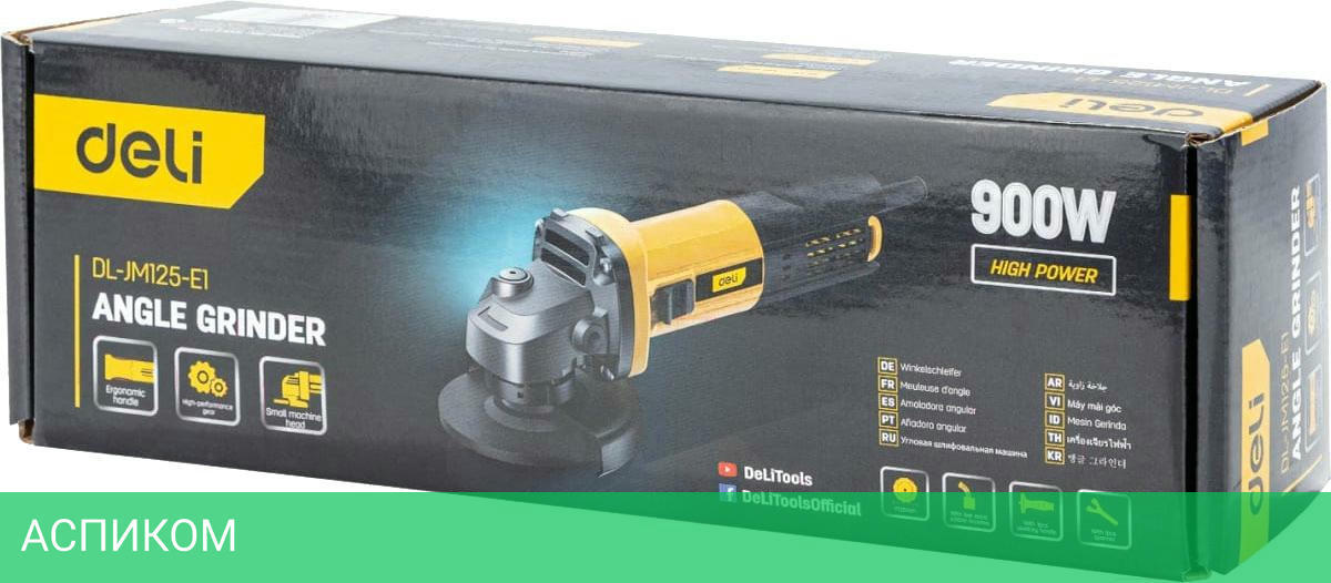 - УШМ- Дополнительная рукоятка- Защитный кожух- Ключ- Дополнительный комплект угольных щёток- Инструкция/гарантийный талон- Коробка