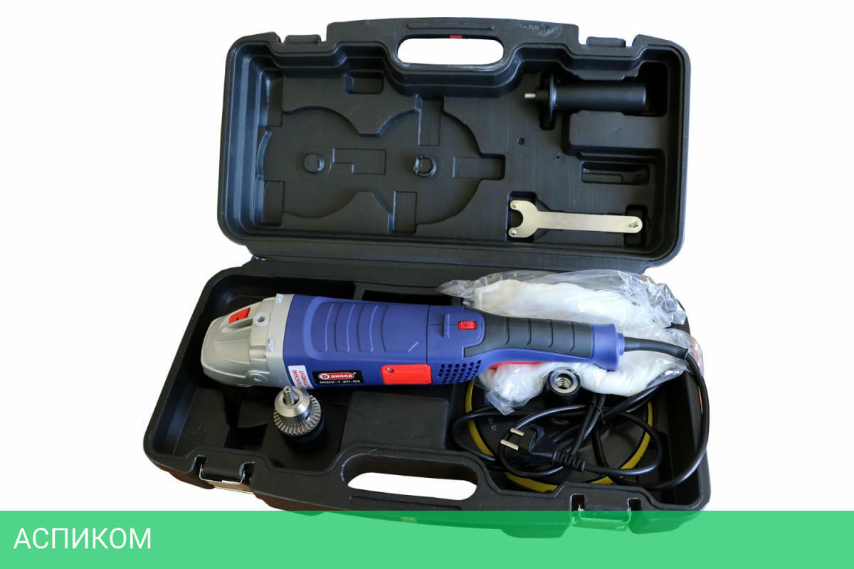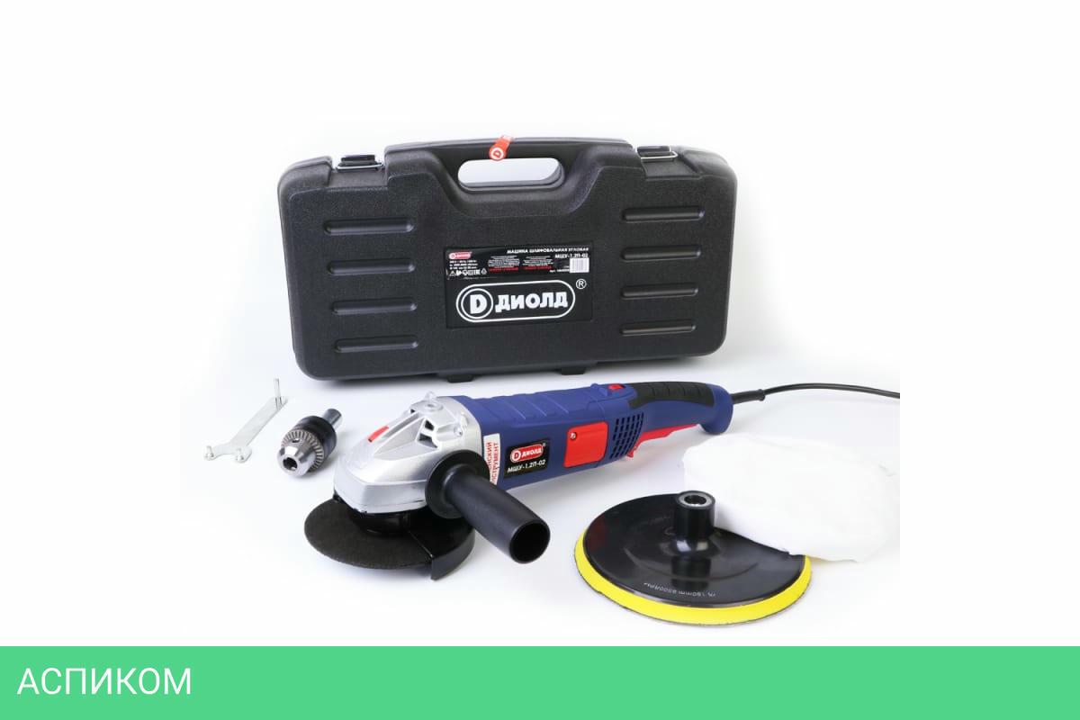 Щетка - 2 штРукоятка дополнительнаяКлючПолировальная насадкаПатрон сверлильный с ключомПереходник для патронаШлифовальная шкурка 180 ммПлатформа для полировальных и шлифовальных насадок