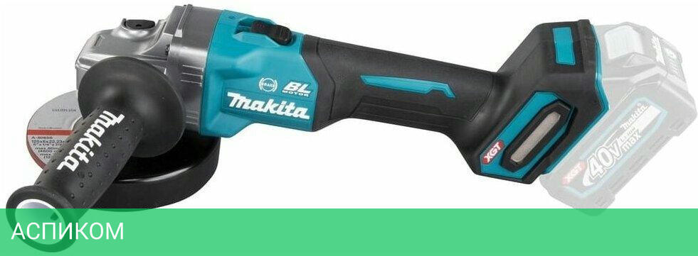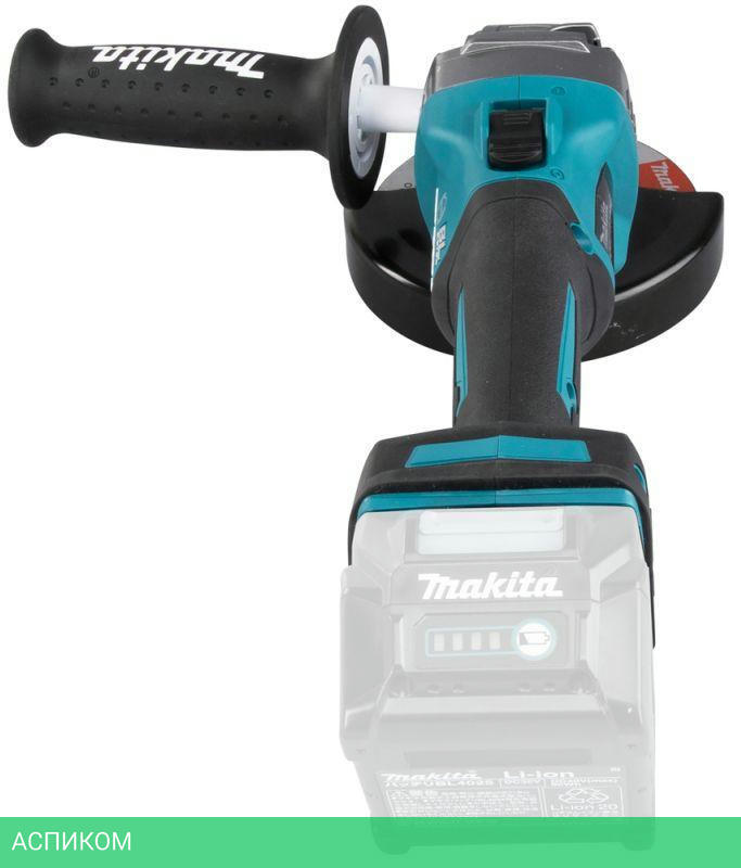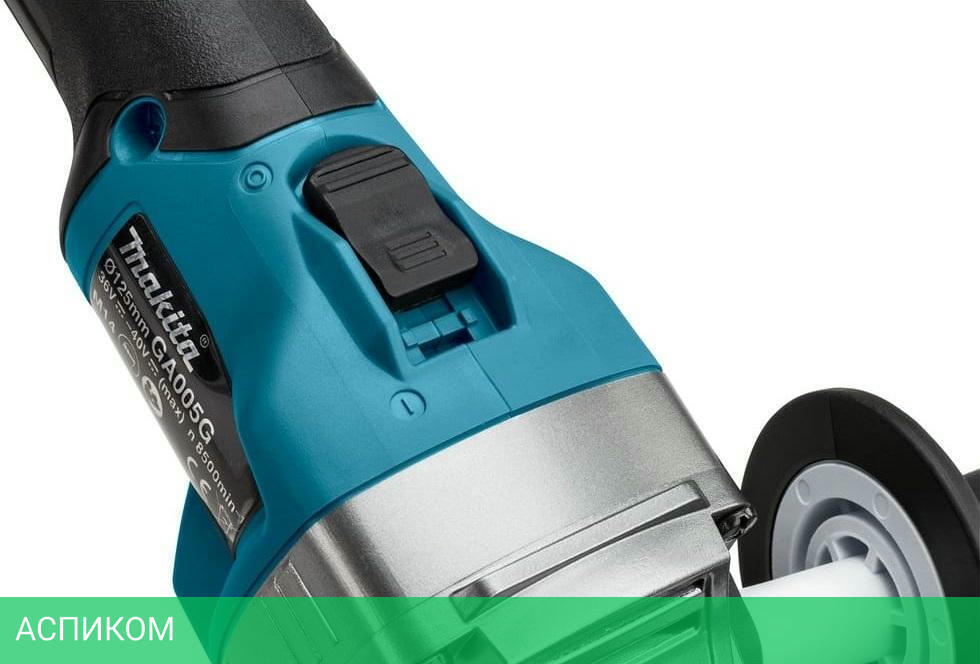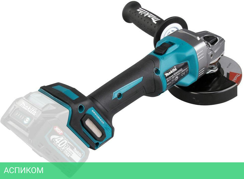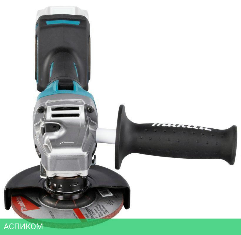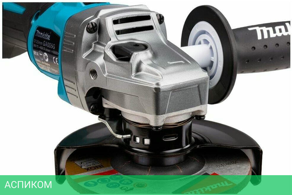 аккумуляторная угловая шлифмашина Makita GA005GZ, инструкция по эксплуатации, гарантийный талон, защитный кожух, боковая рукоятка, опорный фланец, гайка с двумя отверстиями, ключ под два отверстия, коробка.