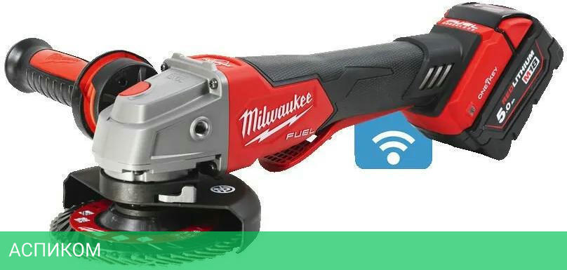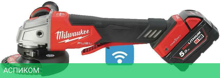 аккумуляторная угловая шлифмашина Milwaukee, дополнительная рукоятка, зажимная гайка, дополнительный аккумулятор, кейс, зарядное устройство