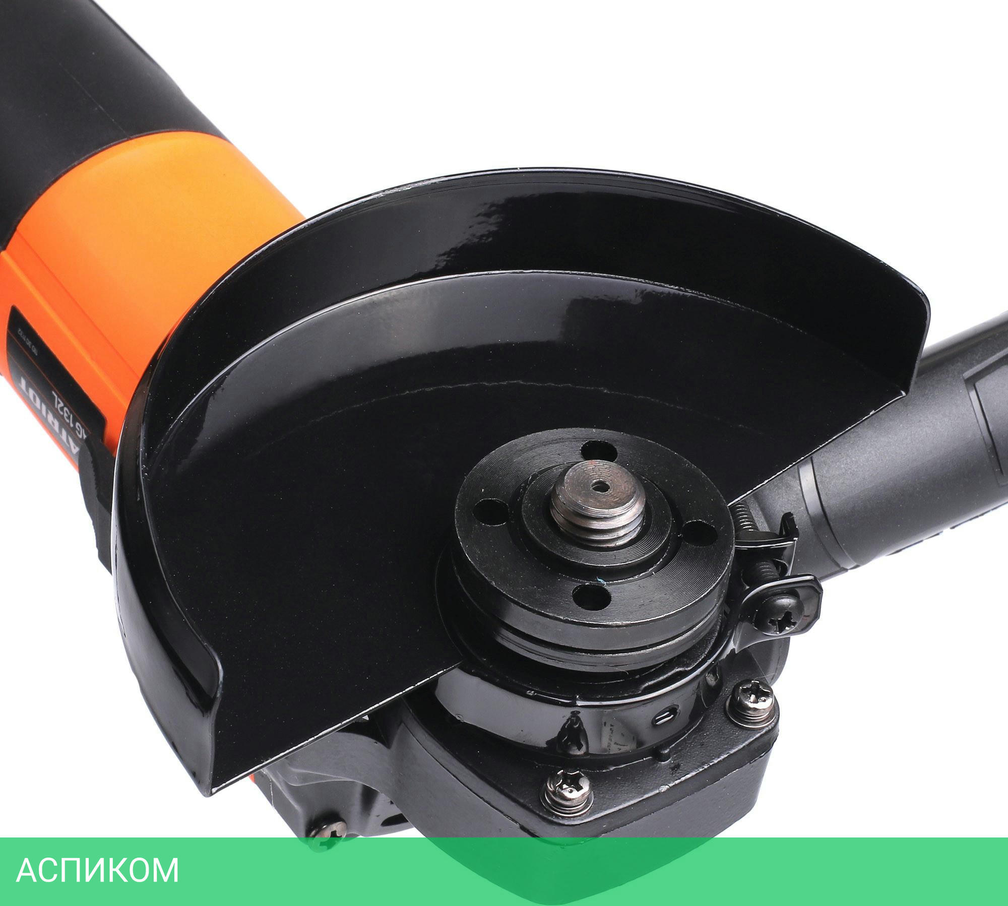 Углошлифовальная машина, защитный кожух диска, боковая рукоятка, комплект угольных щеток, ключ для затягивания стопорной гайки, инструкция.