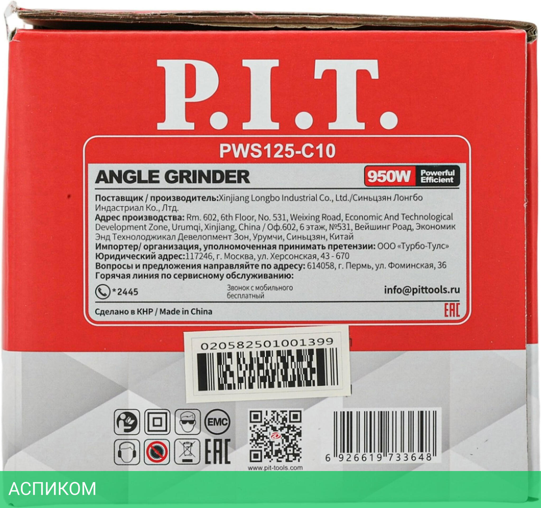угловая шлифмашина / 950.0 / M14 / 11000.0 / 125.0 / нет / сеть / 1.7