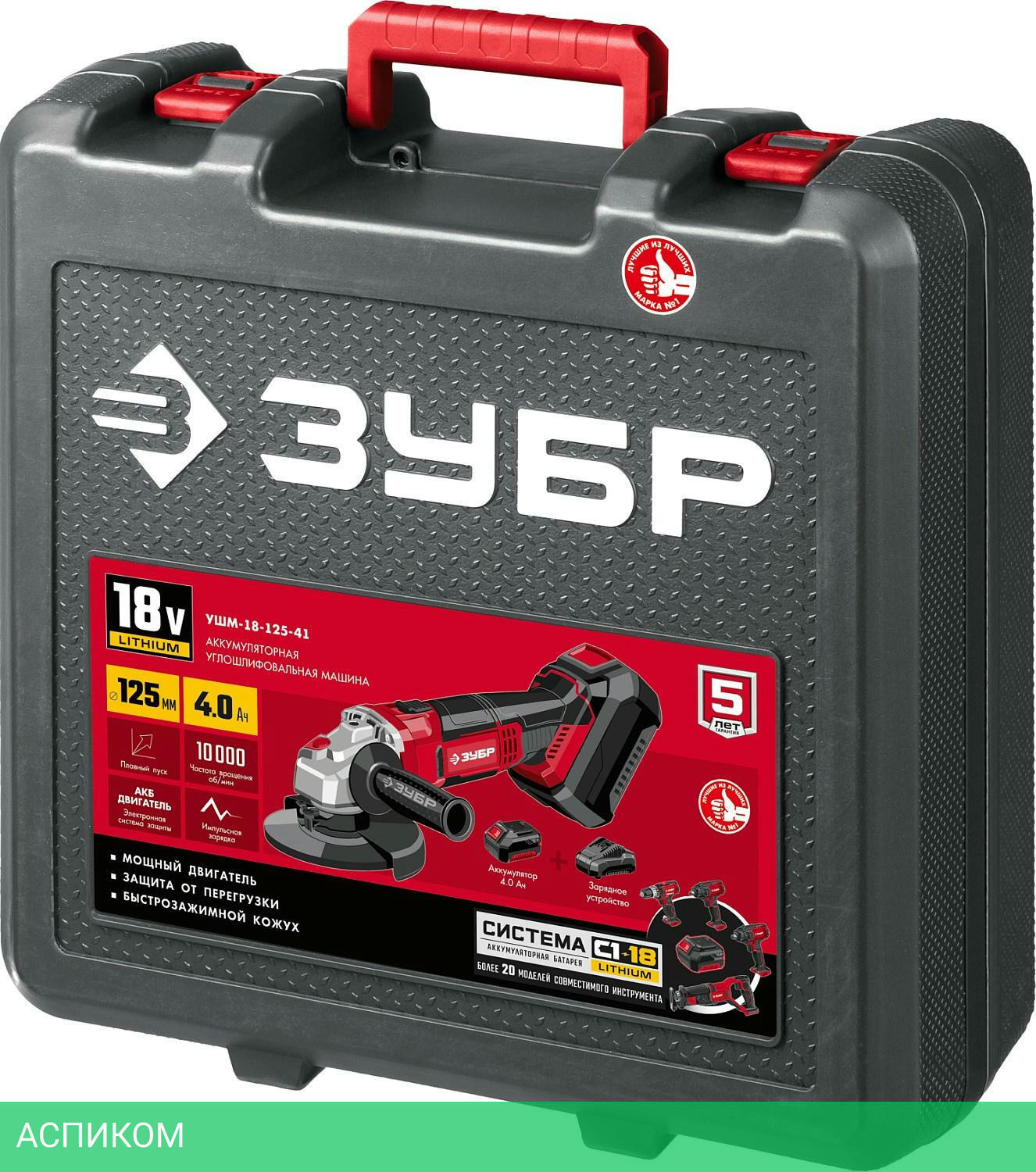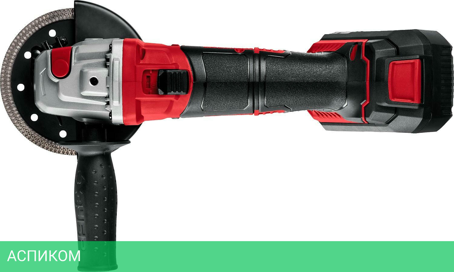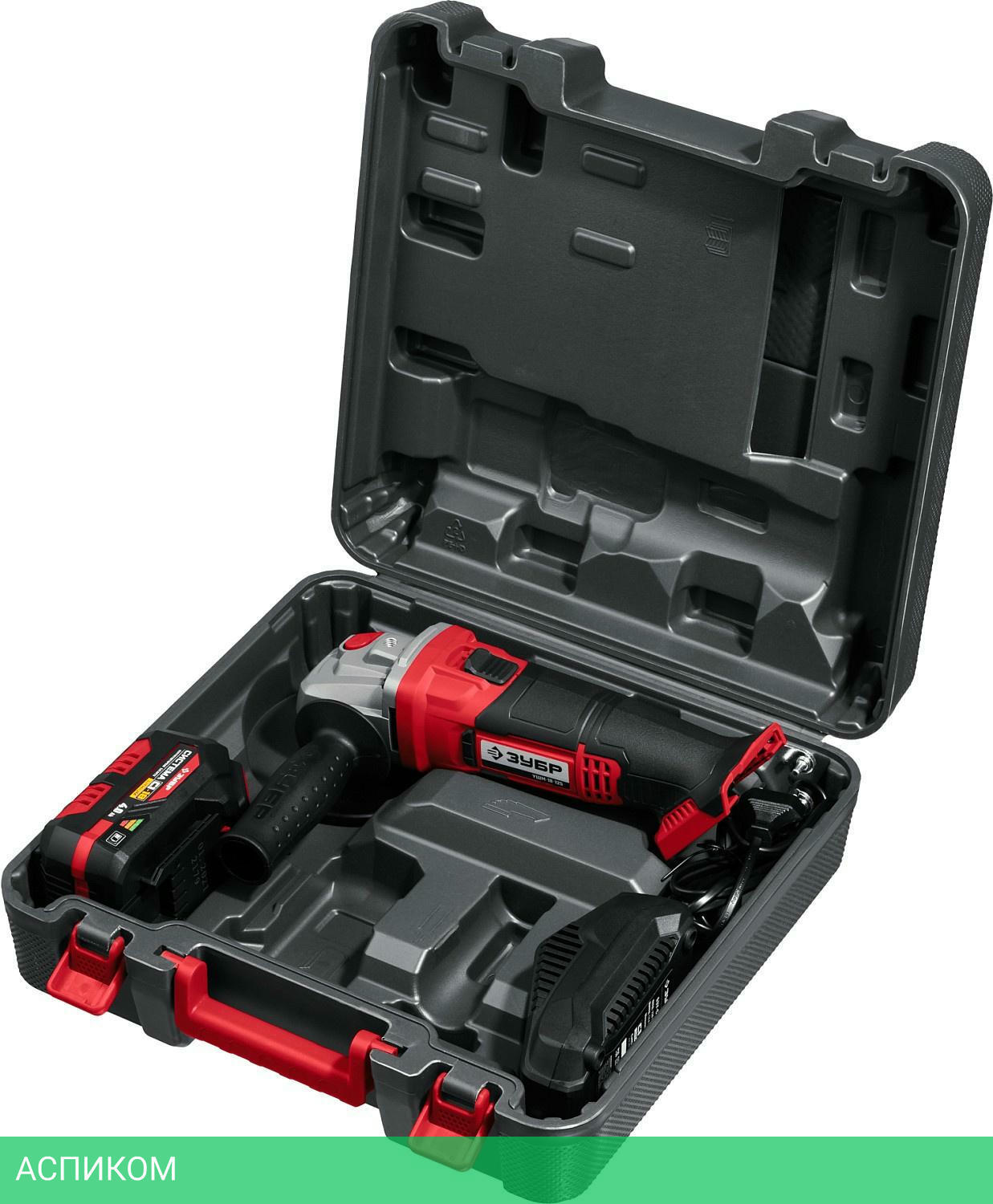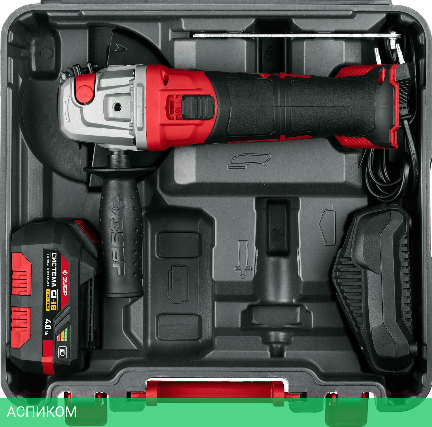 Машина углошлифовальная, аккумулятор, быстрозарядное устройство, кожух защитный, рукоятка дополнительная, ключ специальный, кейс, руководство по эксплуатации.