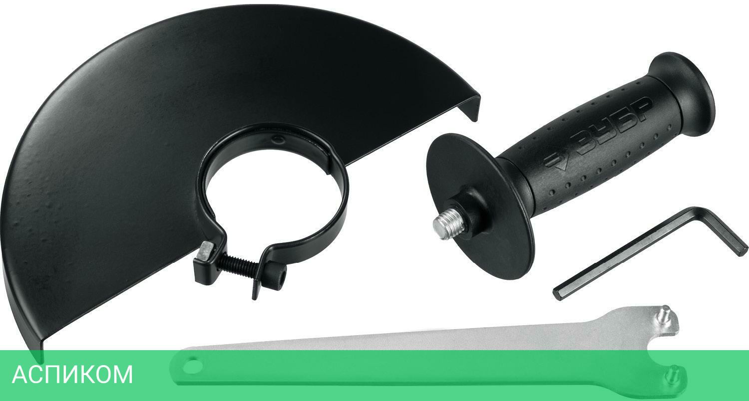 Машина углошлифовальная, кожух защитный, рукоятка дополнительная, ключ специальный, ключ имбусовый, руководство по эксплуатации.