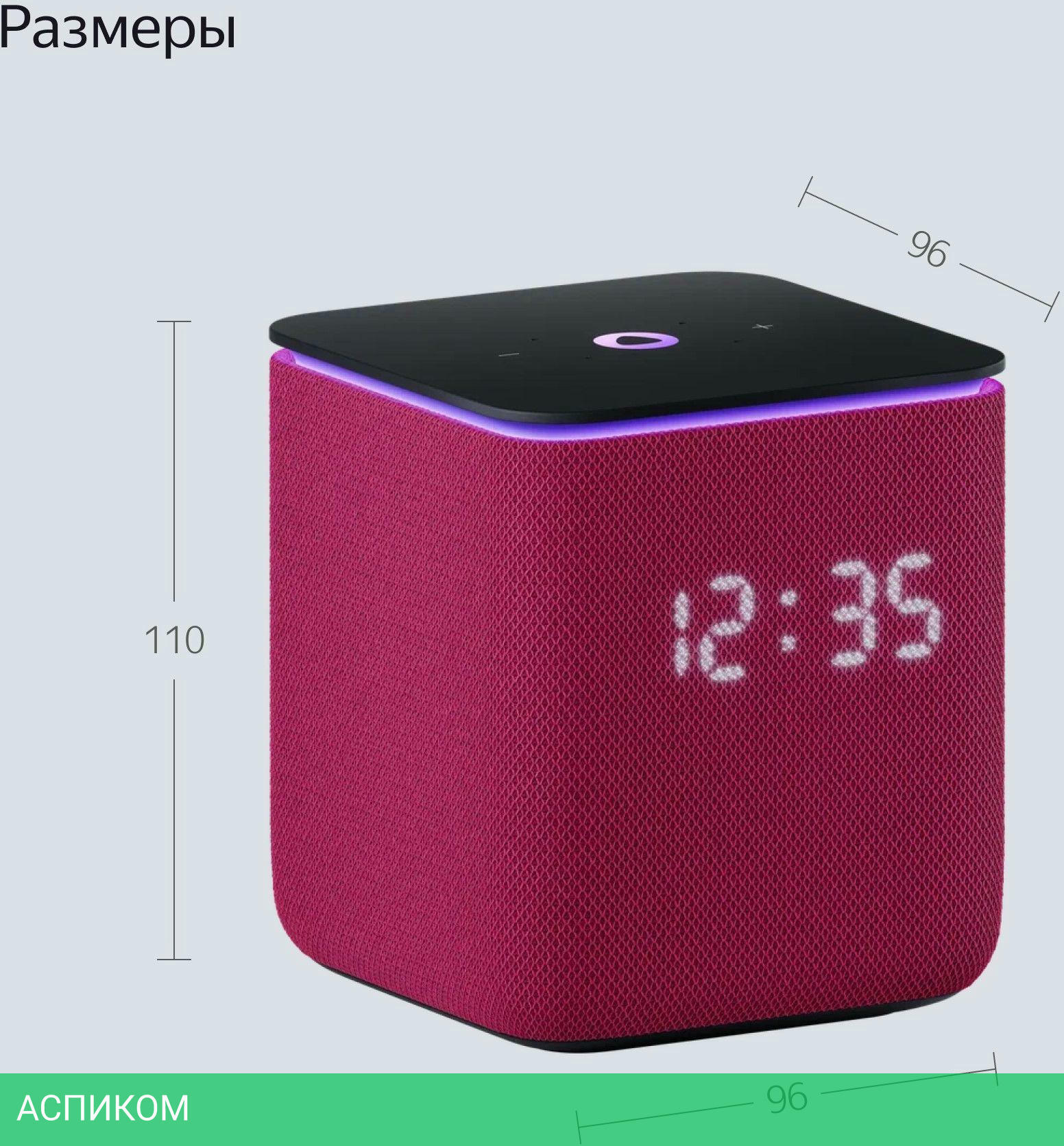 умная колонка / от сети / 24.0 / Алиса / малиновый / 5.0 / нет / нет / нет / пластик; ткань