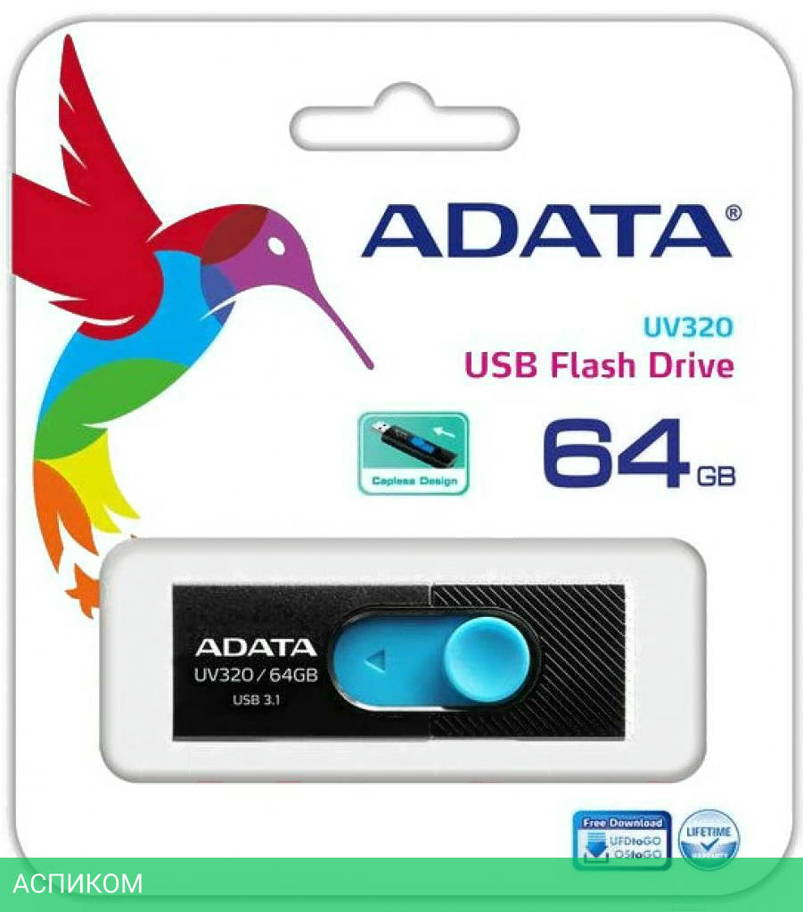 64 ГБ / черный / USB 3.1 / выдвижной разъем / пластик