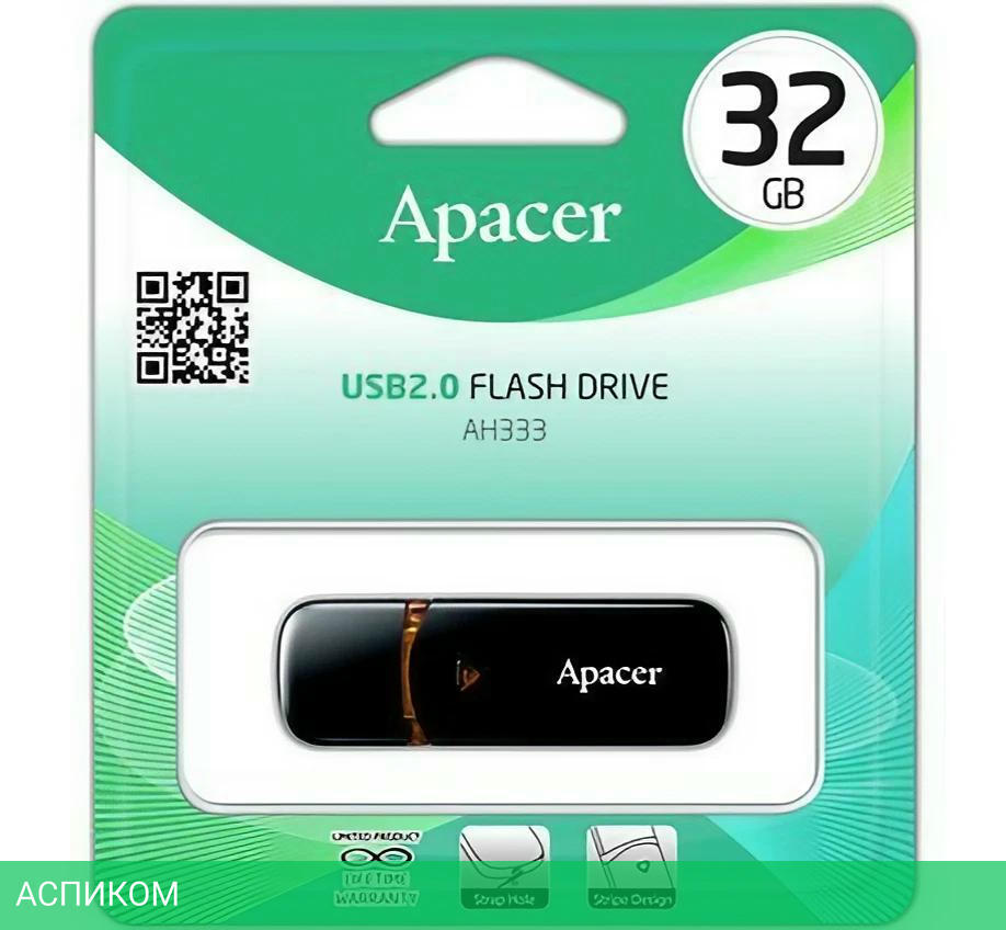 32 ГБ / черный / USB 2.0 Type-A / с колпачком / пластик