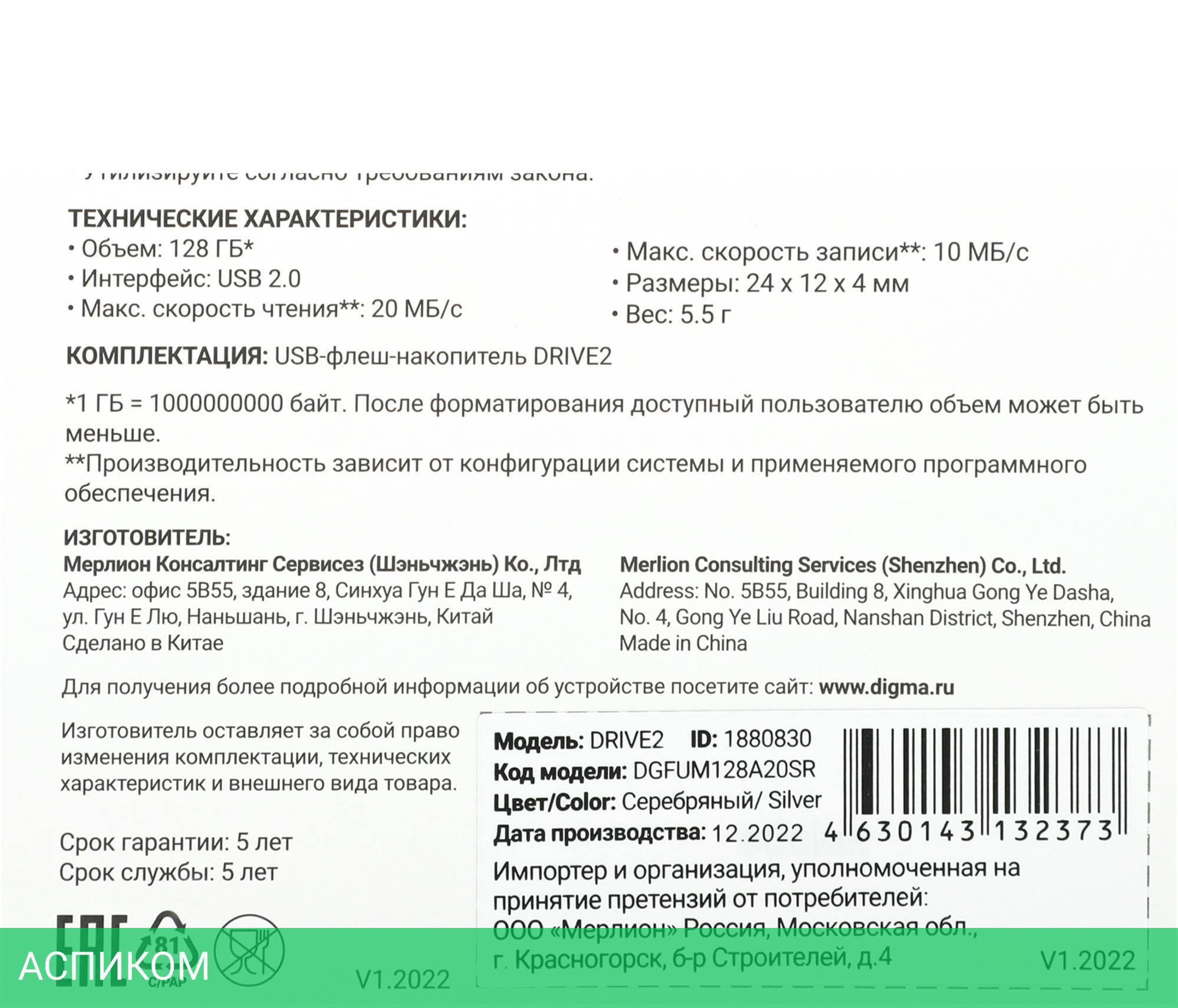 128 ГБ / USB 2.0 / без колпачка / металл / серебристый
