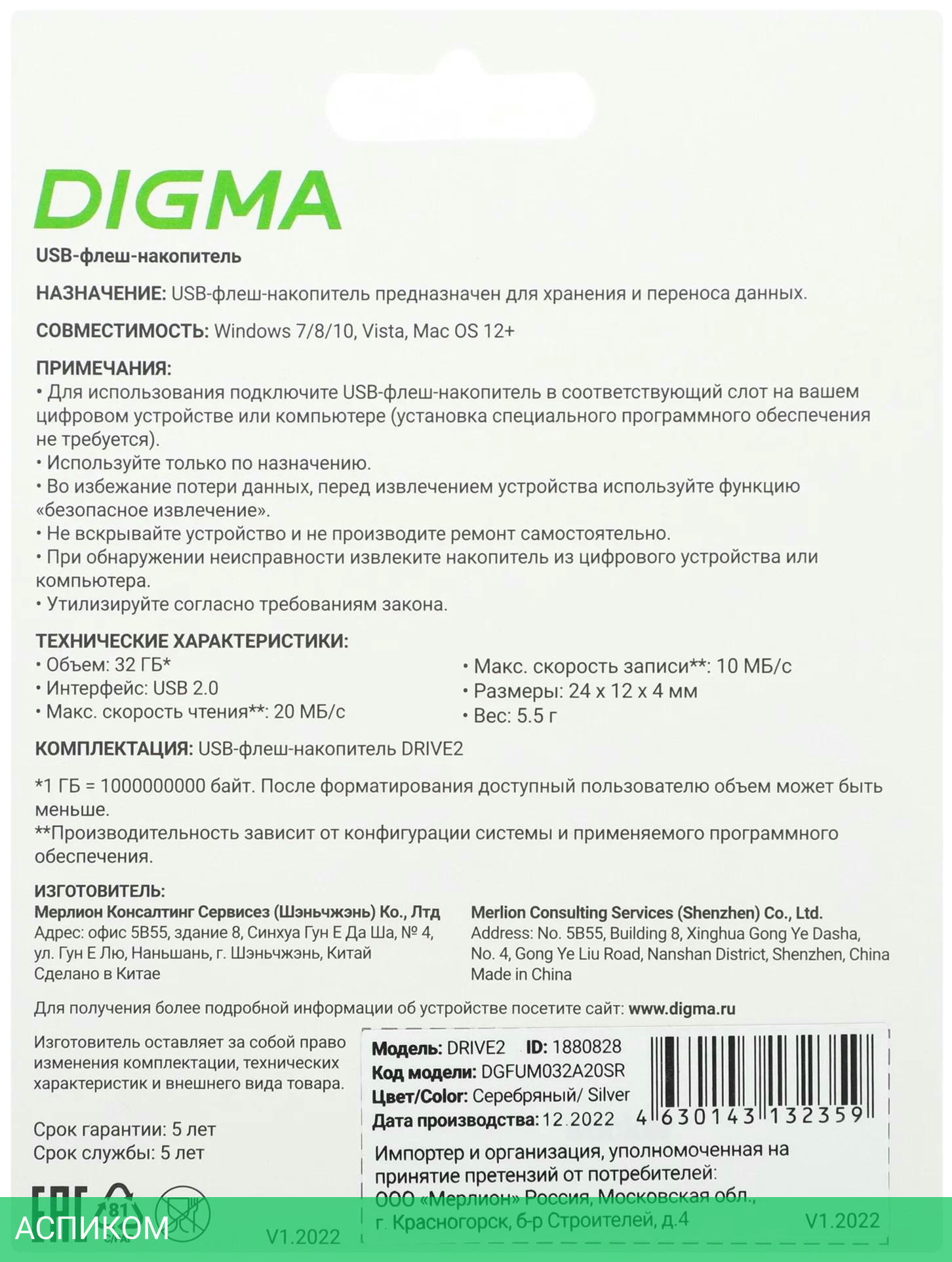 32 ГБ / USB 2.0 / без колпачка / металл / серебристый