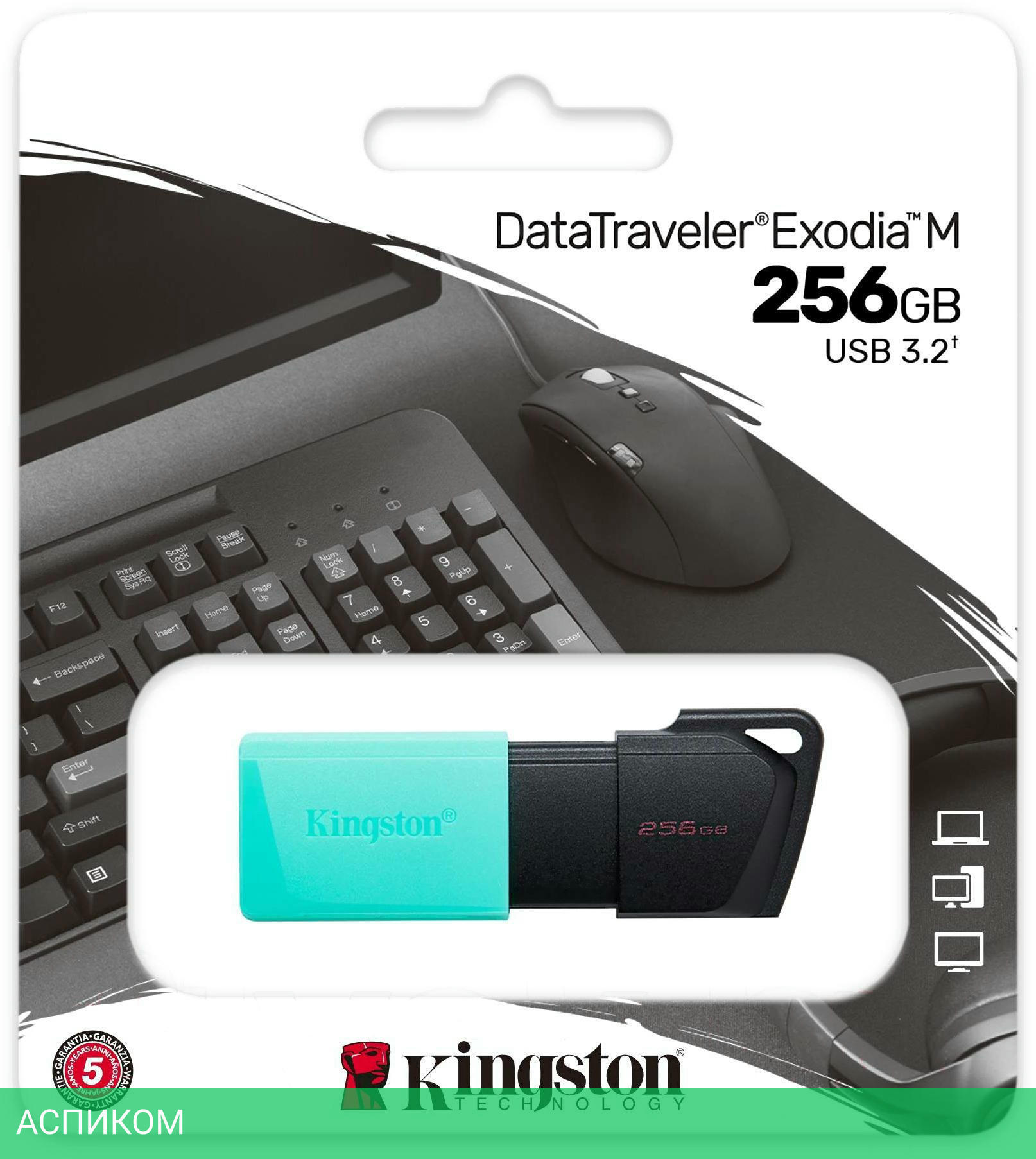 256 ГБ / USB 3.2 Type-A / выдвижной разъем / пластик / черный; бирюзовый