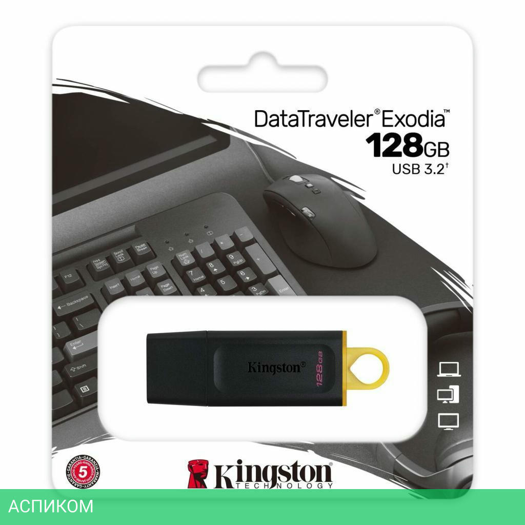 128 ГБ / USB 3.2 Type-A / с колпачком / пластик / черный