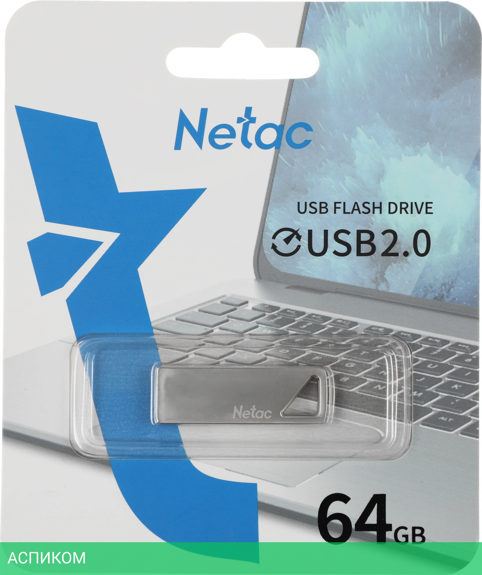 64 ГБ / USB 2.0 Type-A / без колпачка / металл / серебристый