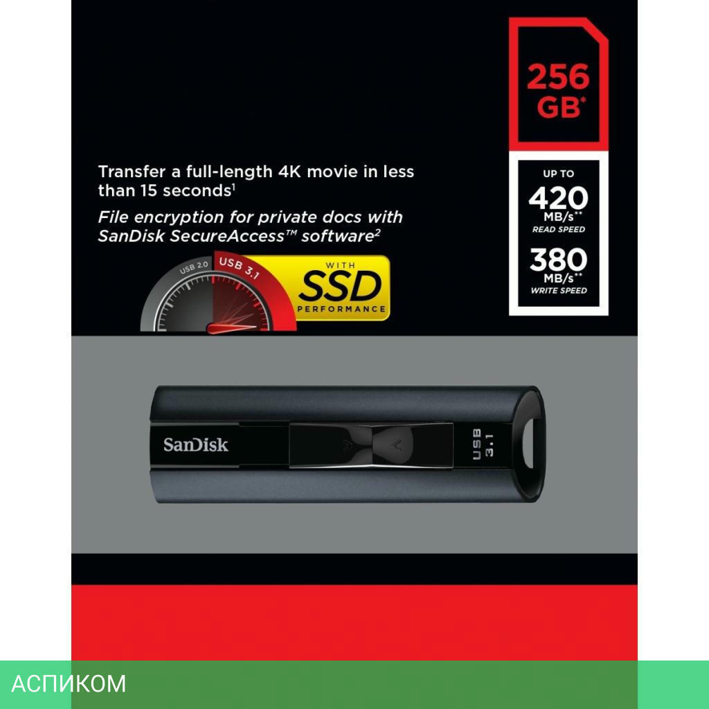 256 ГБ / черный / USB 3.1 / выдвижной разъем