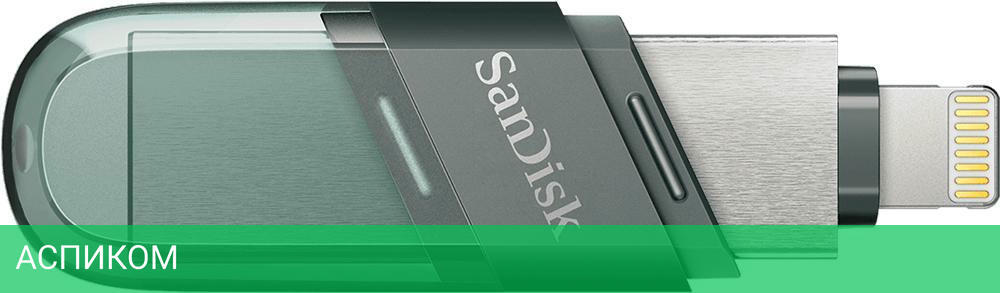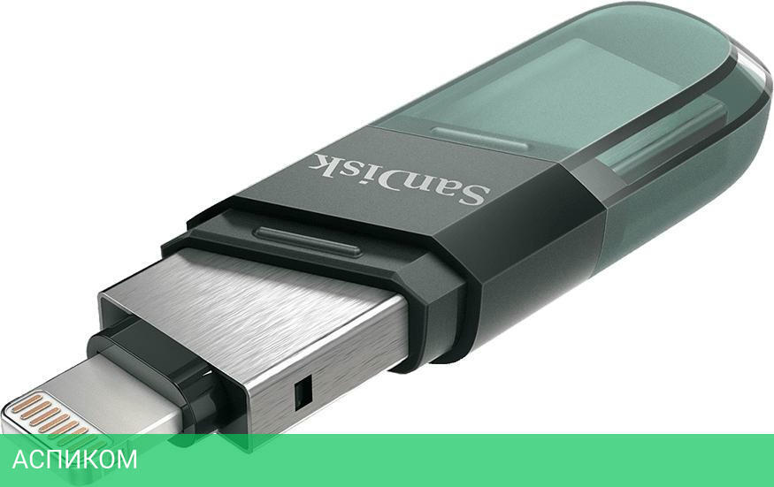256 ГБ / USB 3.2 Type-A/Lightning / с колпачком / металл; пластик / серый; зеленый