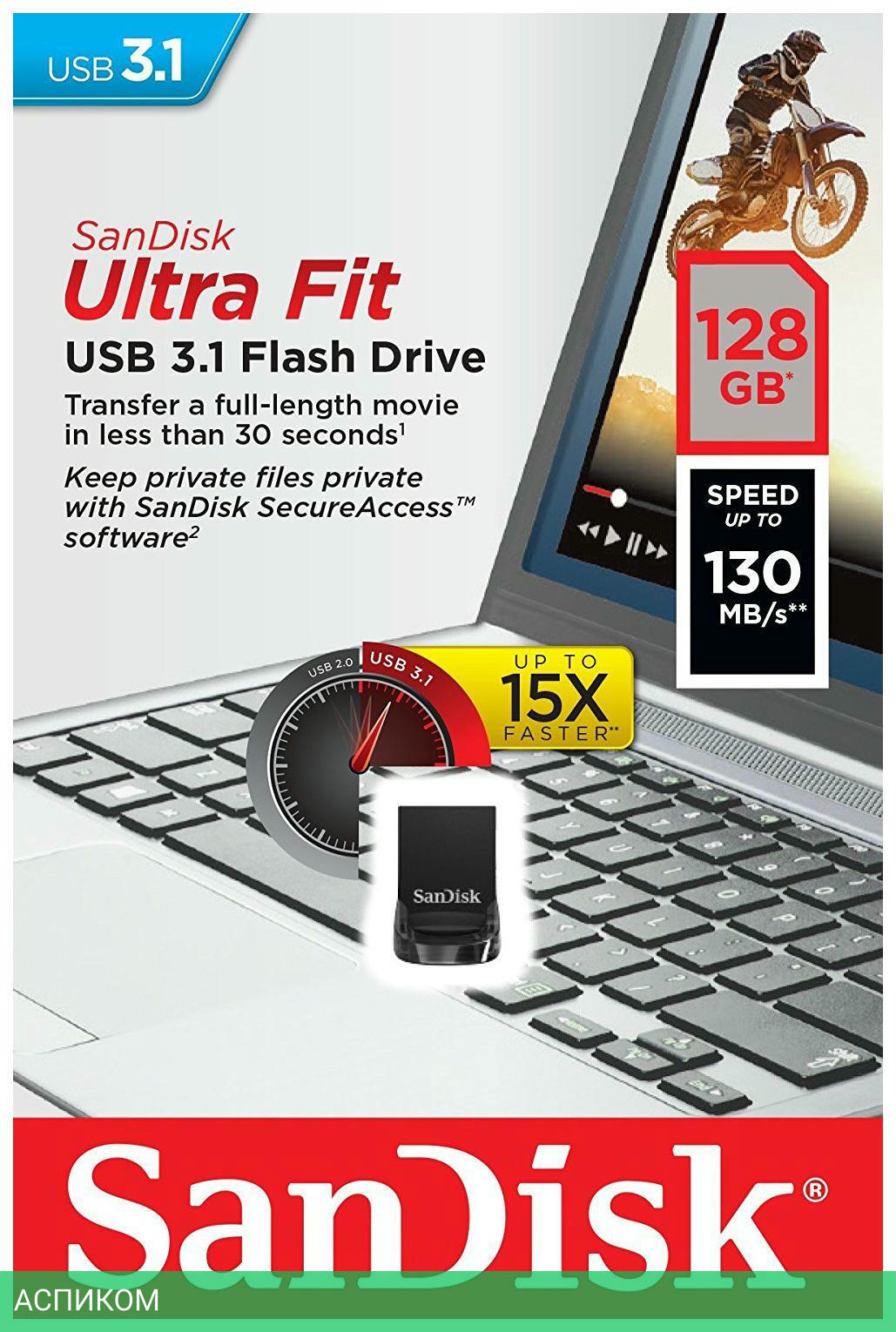 128 ГБ / USB 3.2 Gen 1 Type-A (5 Гбит/сек) / без колпачка / пластик / черный