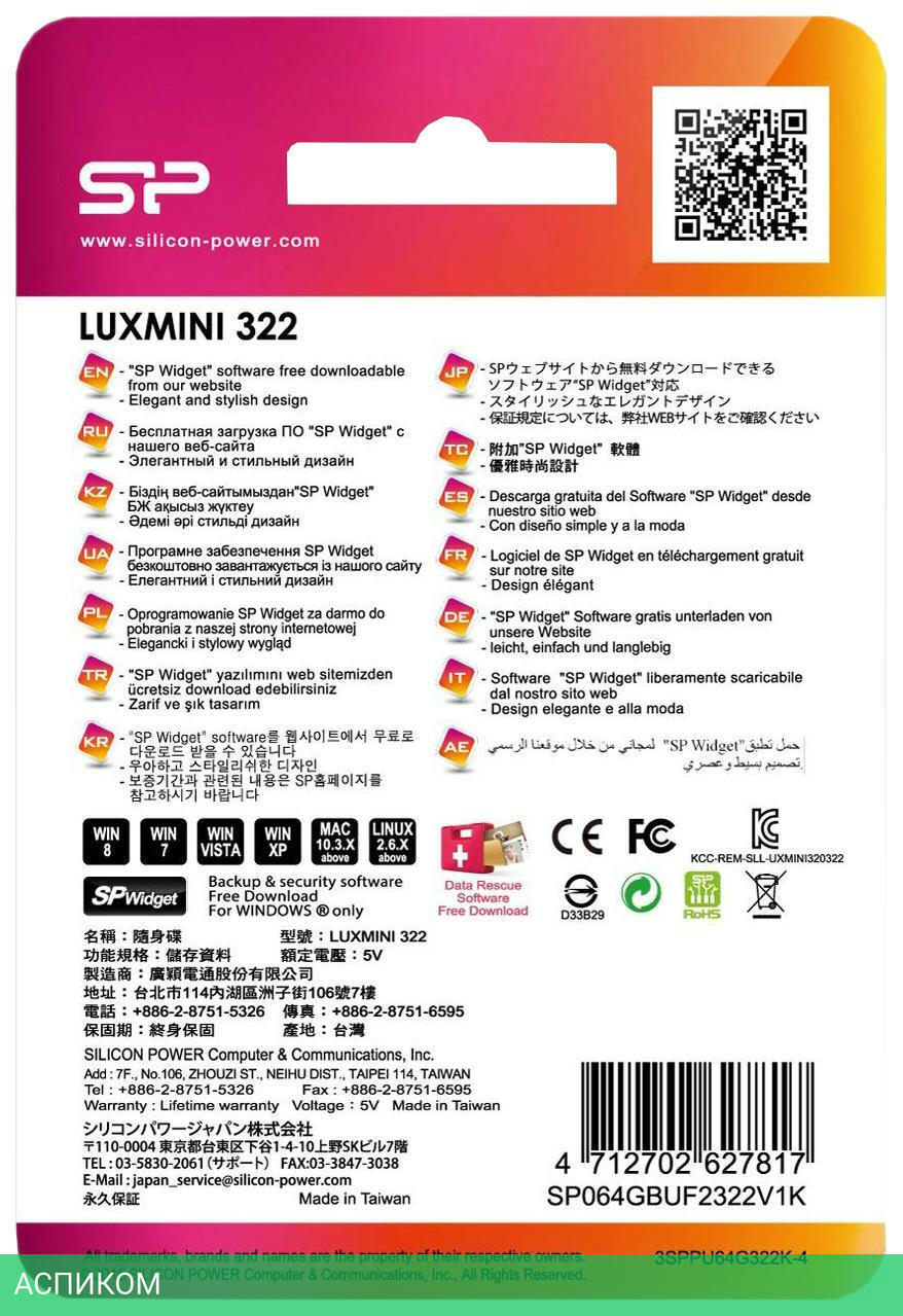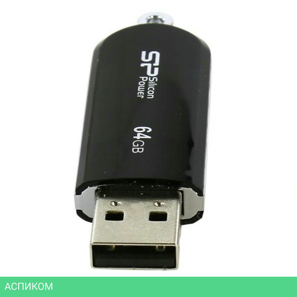 64 ГБ / USB 2.0 / с колпачком / пластик / черный