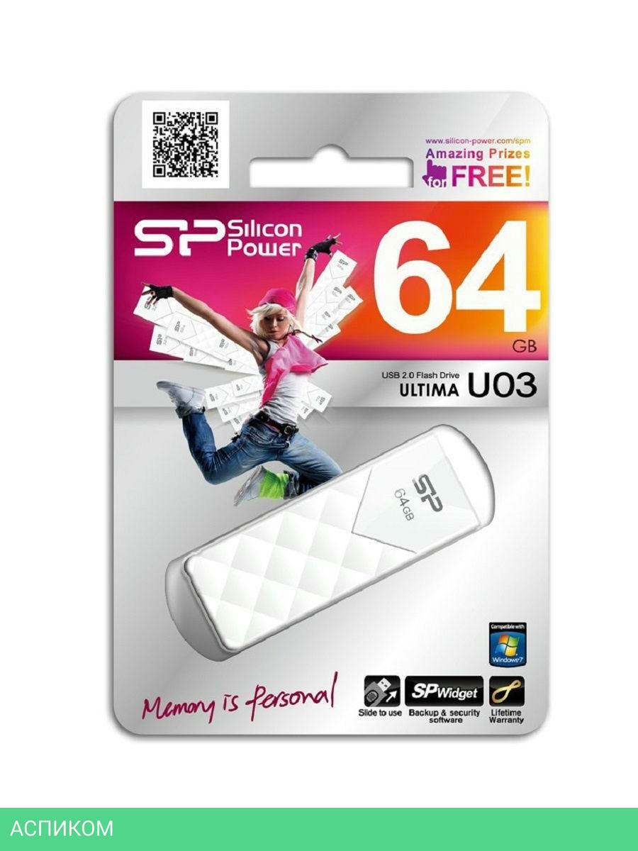 64 ГБ / белый / USB 2.0 Type-A / выдвижной разъем / пластик