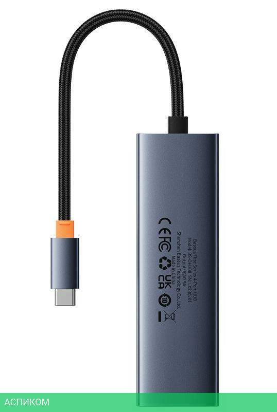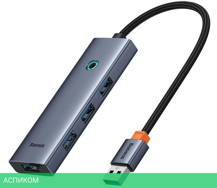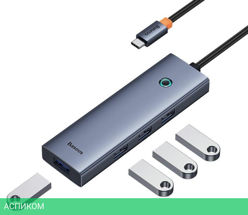 USB-хаб / серый / внешнее / USB-C / USB Type-A 3.2 Gen1 (5 Гбит/с) / 4 / нет