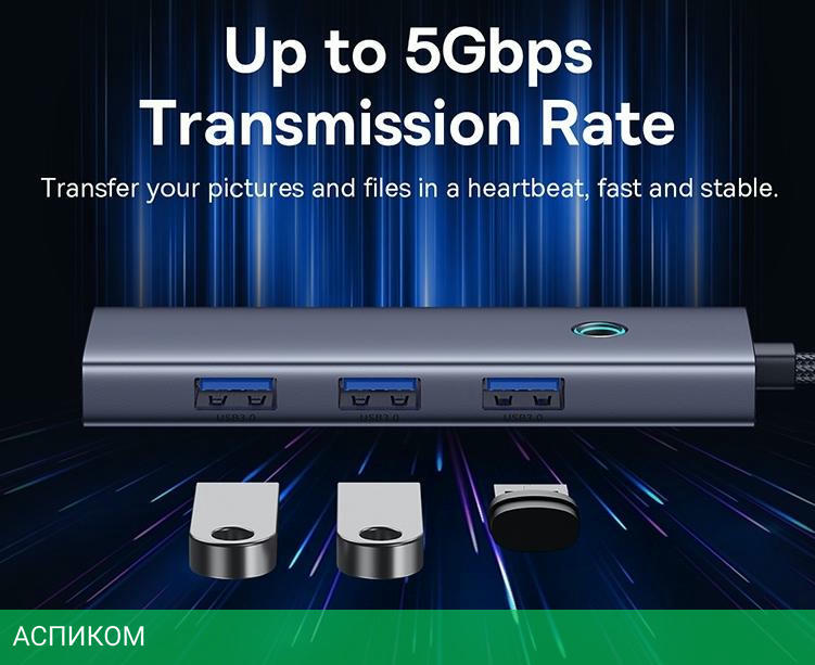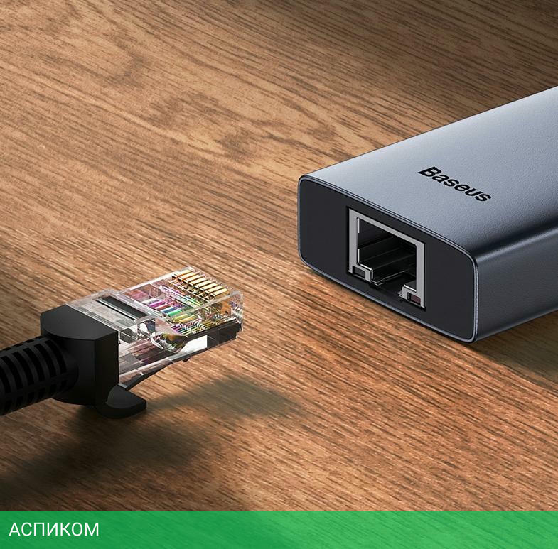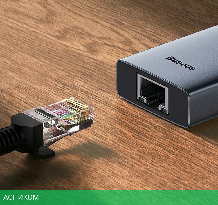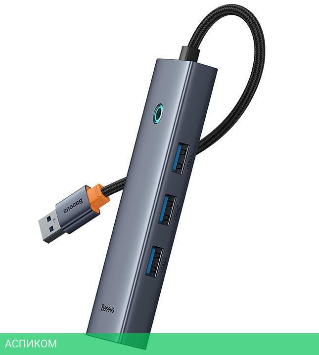 USB-хаб / серый / внешнее / USB-A / USB Type-A 3.2 Gen1 (5 Гбит/с); RJ-45 / 3 / нет