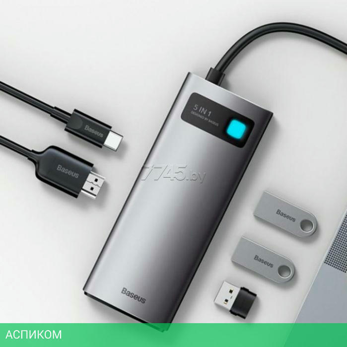 USB-хаб / серый / внешнее / USB 3.2 Gen1 Type-C (5 Гбит/с) / USB Type-A 3.2 Gen1 (5 Гбит/с); HDMI / 5 / нет