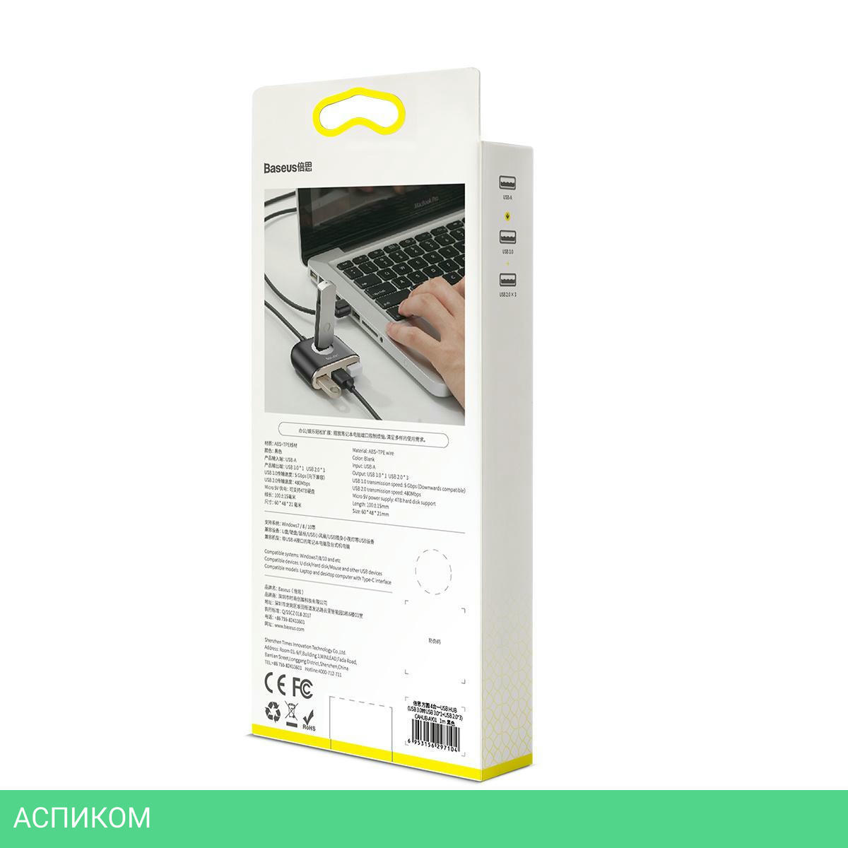 USB-хаб / черный / внешнее / USB-A / micro USB 2.0; USB Type-A 2.0; USB Type-A 3.2 Gen1 (5 Гбит/с) / 4 / да