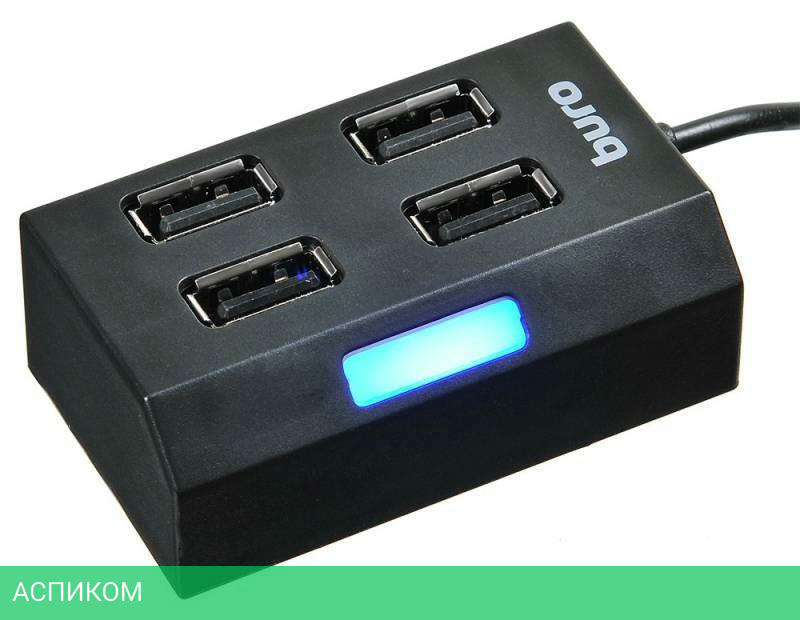USB-хаб / внешнее / USB 2.0 Type A / USB Type-A 2.0 / черный / 4 / нет