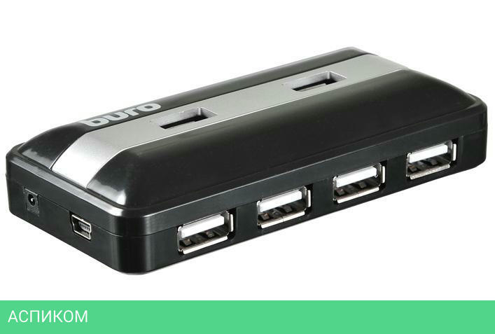 USB-хаб / внешнее / USB 2.0 Type A / USB Type-A 2.0 / черный / 7 / нет
