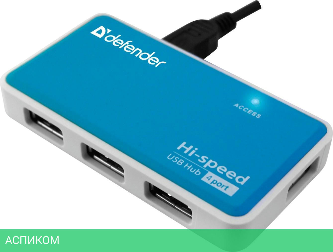 USB-хаб / голубой / внешнее / USB 2.0 Type A / USB-A / 4 / нет