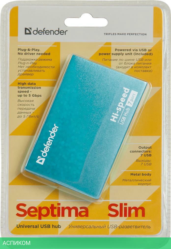 USB-хаб / синий / внешнее / USB-A / USB Type-A 2.0 / 7 / нет