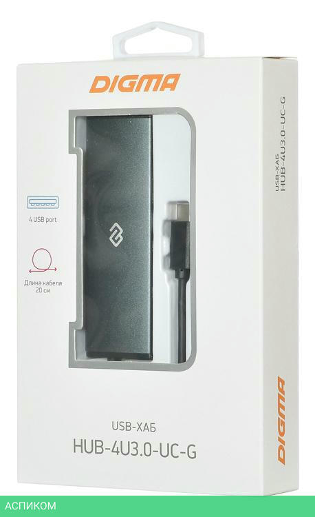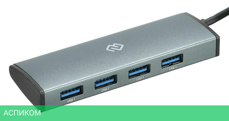 USB-хаб / внешнее / USB-C / USB Type-A 3.2 Gen1 (5 Гбит/с) / серый / 4 / нет