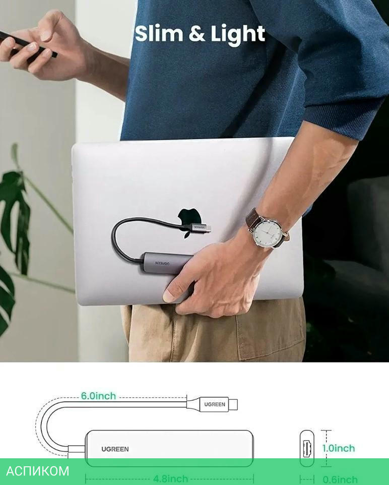 USB-хаб / внешнее / USB 3.2 Gen1 Type-C (5 Гбит/с) / USB Type-A 3.2 Gen1 (5 Гбит/с) / серый / 4 / нет