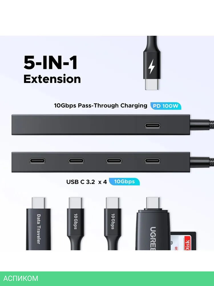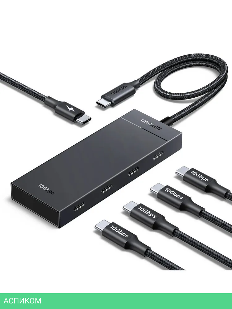 USB-хаб / серый / внешнее / USB-C / USB 3.2 Gen2 Type-C (10 Гбит/с) / 4 / нет
