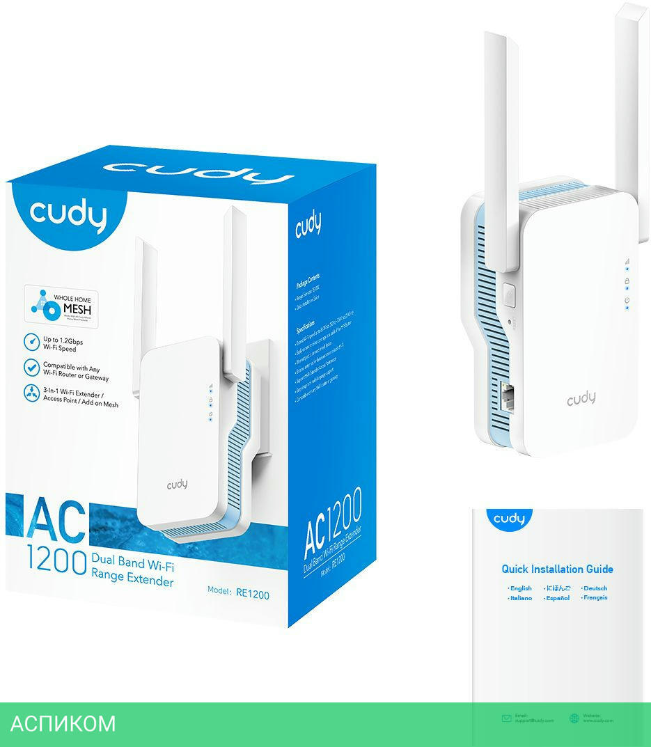 усилитель Wi-Fi / внутренняя / 802.11ac (Wi-Fi 5) / белый / 867.0 / 2.4; 5