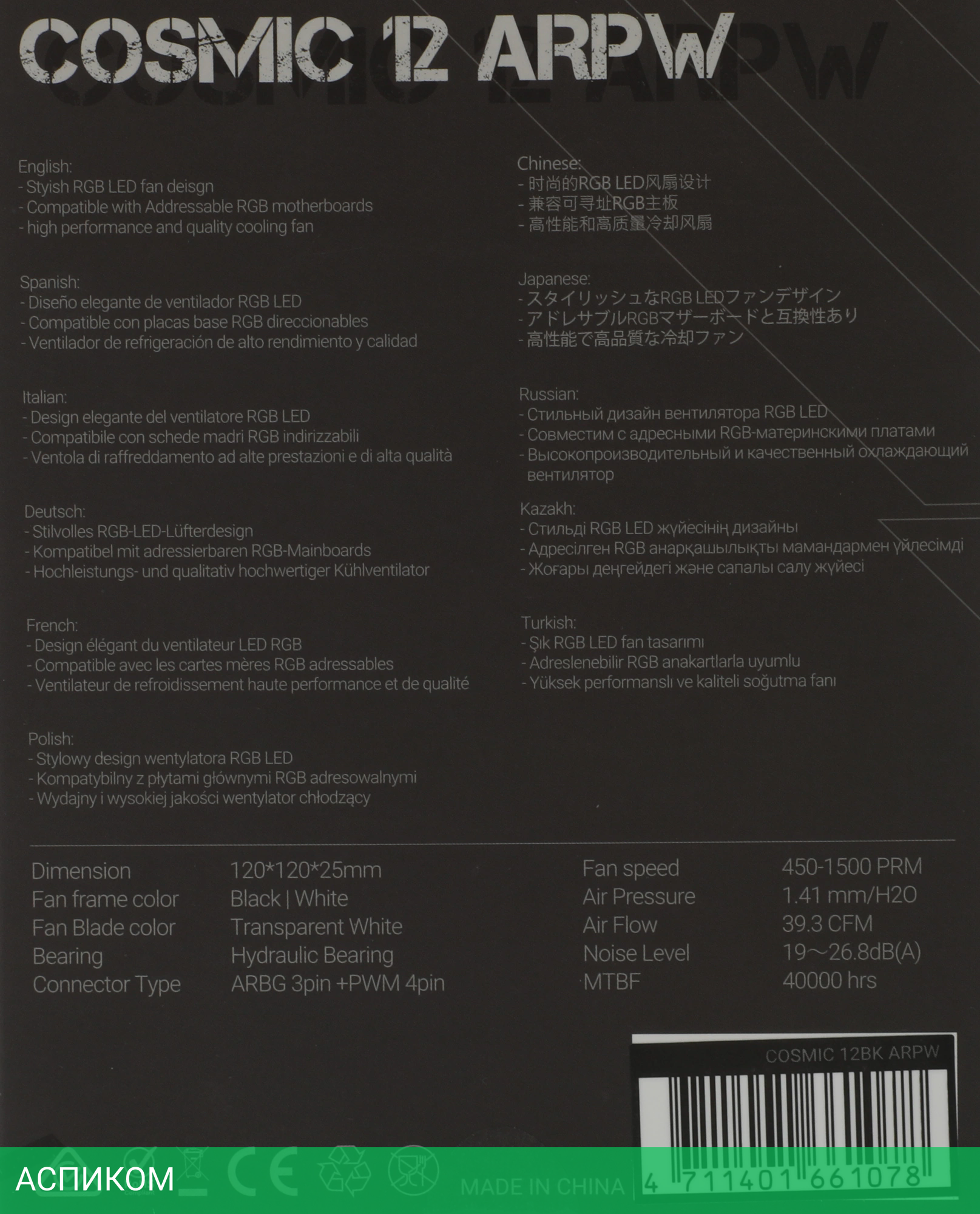 вентилятор / 3.0 / 12.0 / 1500.0 / черный / 120 / гидродинамический (FDB) / да / 18.0