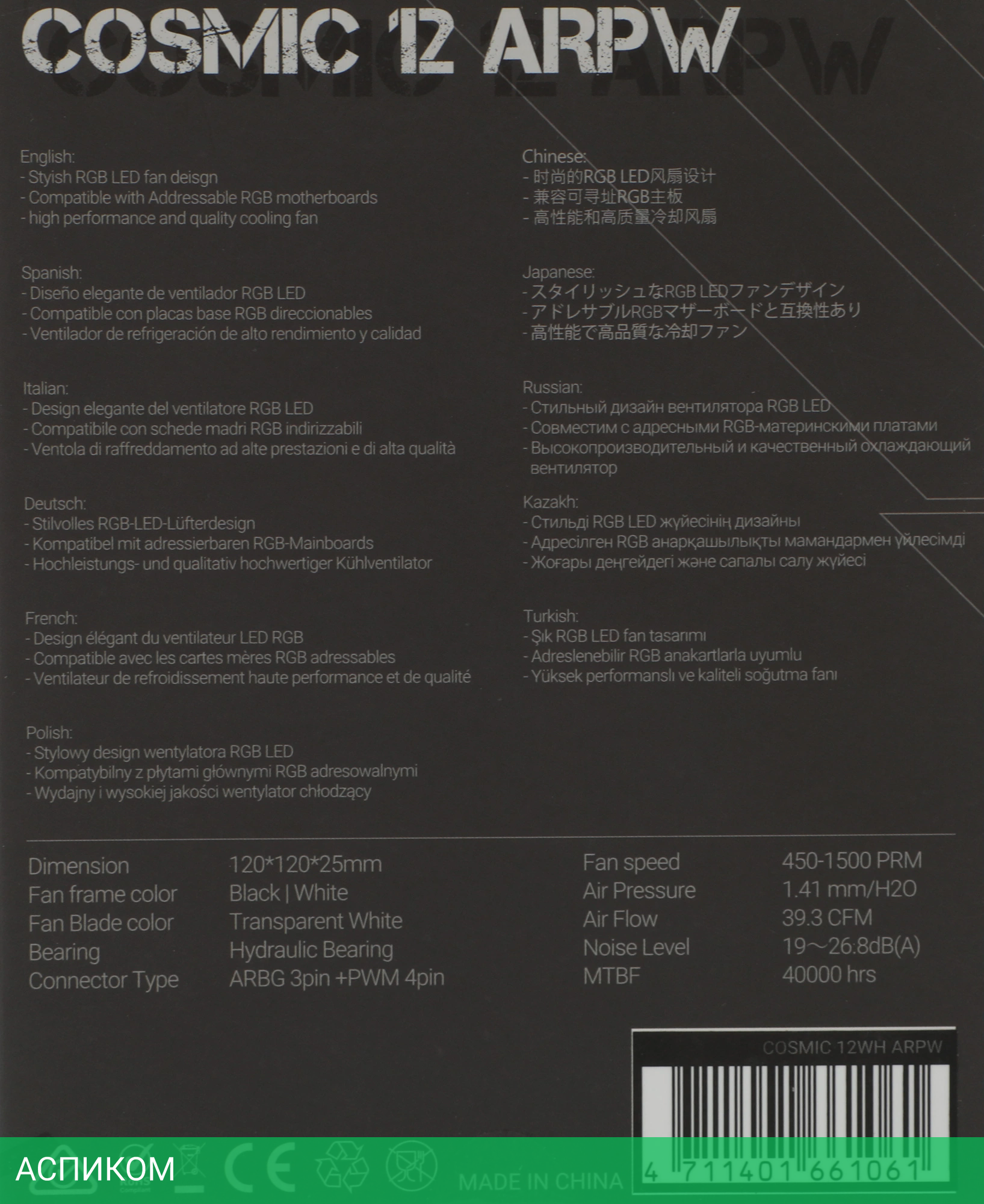 белый / вентилятор / 3.0 / 12.0 / 1500.0 / 120 / гидродинамический (FDB) / да / 18.0