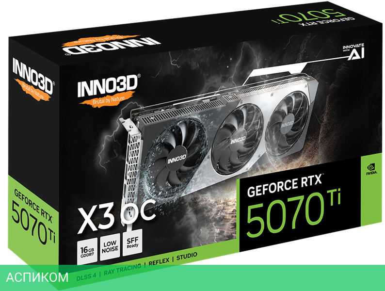 Видеокарта Inno3D GeForce RTX 5070 Ti X3 OC 16Gb GDDR7 (N507T3-16D7X-176068N) - купить по выгодной цене | АСПИКОМ