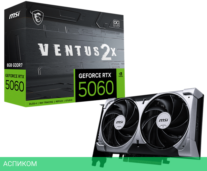Видеокарта MSI GeForce RTX 5060 Ventus 2X OC 8GB GDDR7 - купить по выгодной цене | АСПИКОМ