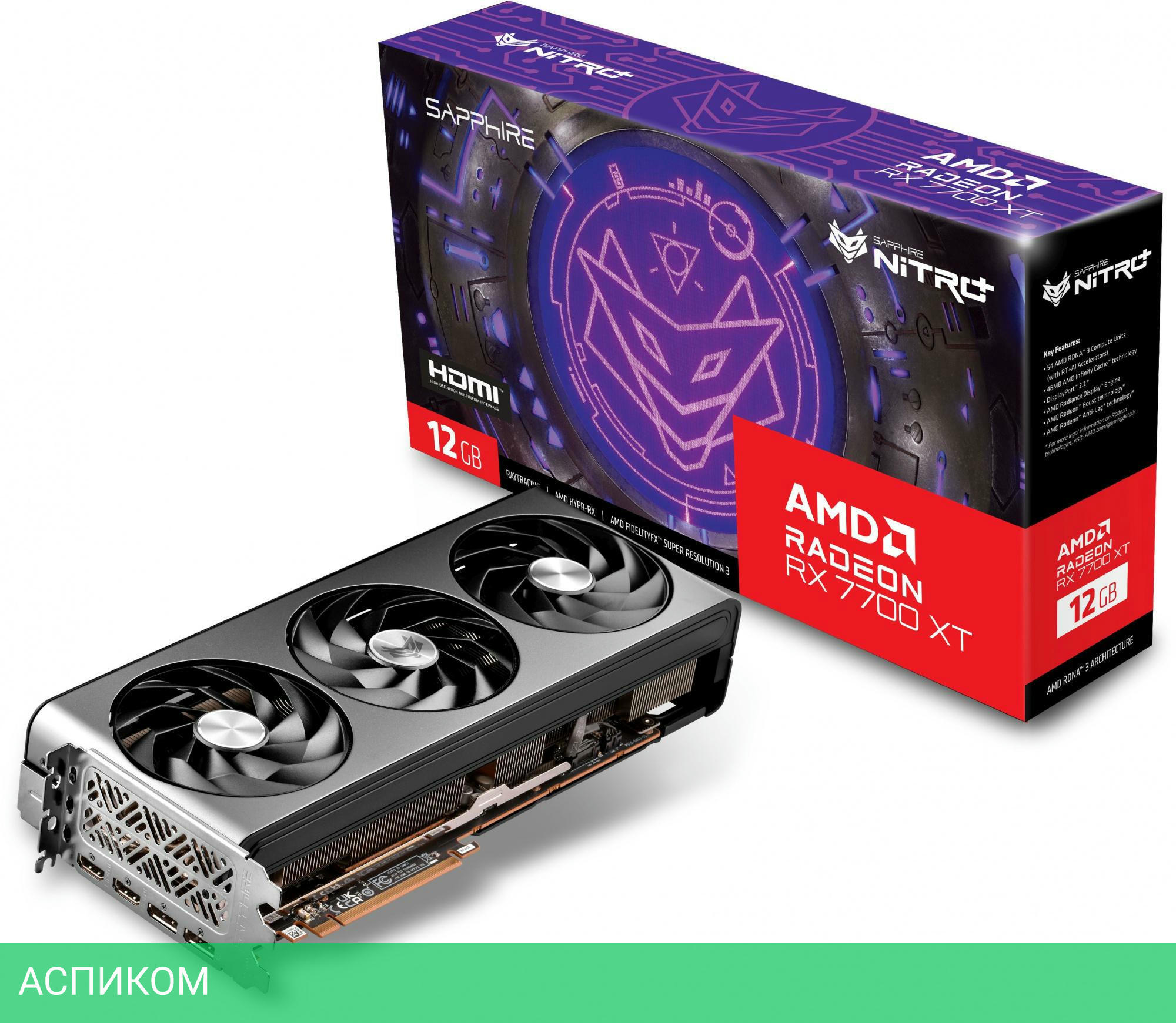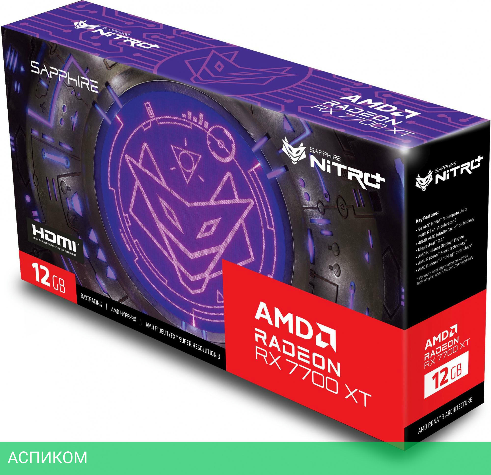 AMD / нет / Radeon RX 7700 XT / 12.0 / GDDR6 / воздушное / 3 / 8+8 pin / PCI Express x16 4.0 / 700 / 2 / 2 / 6.2