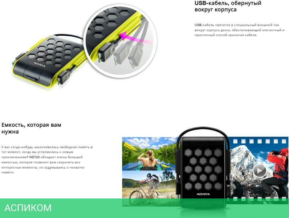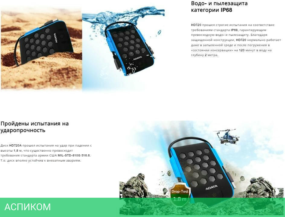 Внешний накопитель A-Data 1Tb HD720 синий (AHD720-1TU31-CBL)/2.5"/USB 3.2 Gen1 Type-A (5 Гбит/с)/пластик, силикон