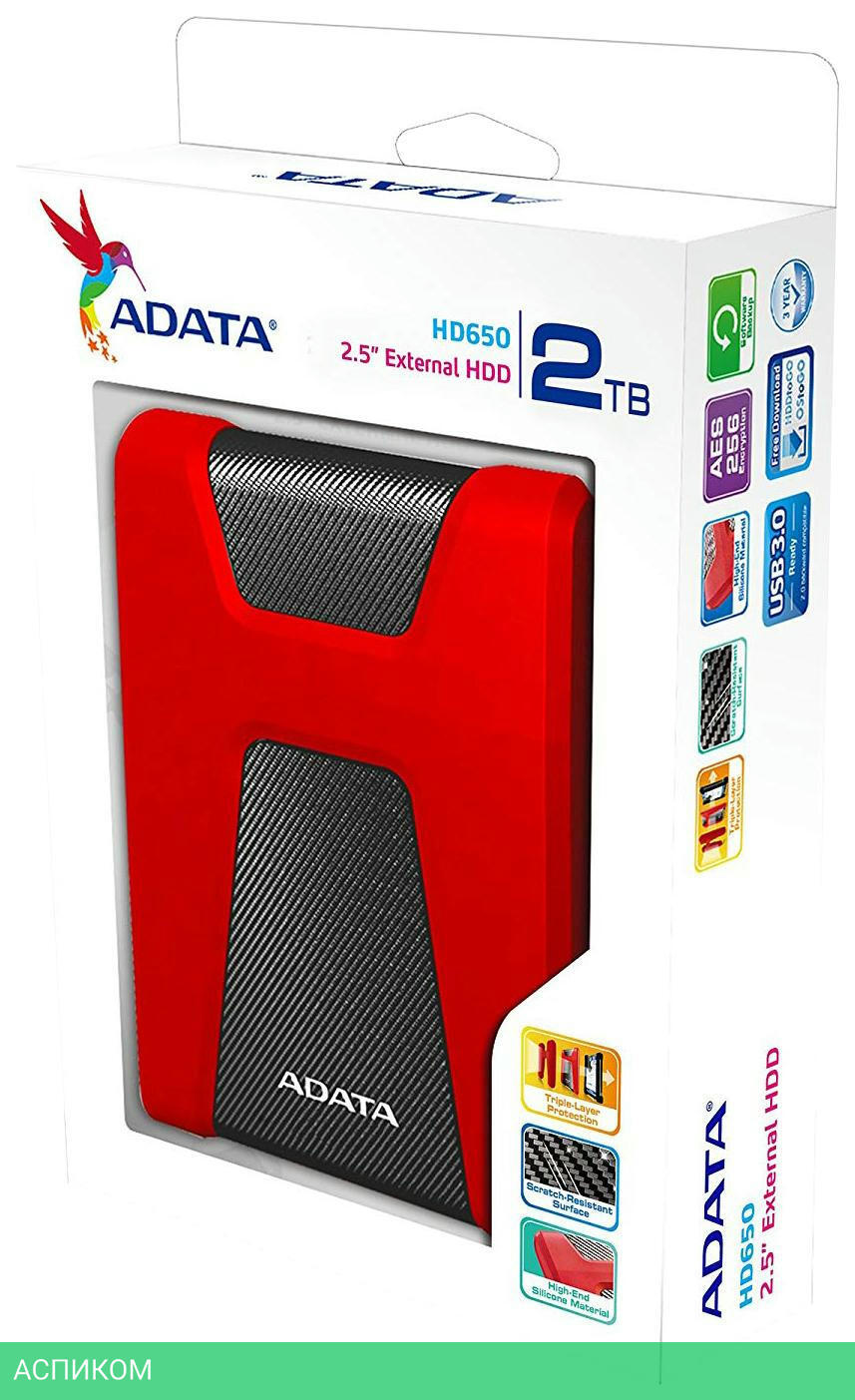 Внешний накопитель A-Data 2Tb AHD650-2TU31-CRD HD650 красный/2.5"/пластик, резина
