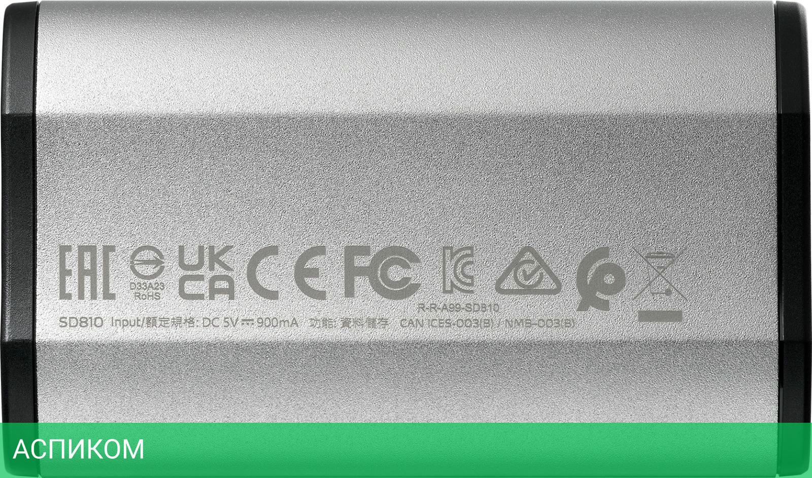 Внешний накопитель A-Data 2TB EXT SD810-2000G-CSG/1.8"/USB 3.2 Gen2x2 Type-C (20 Гбит/с)/металл