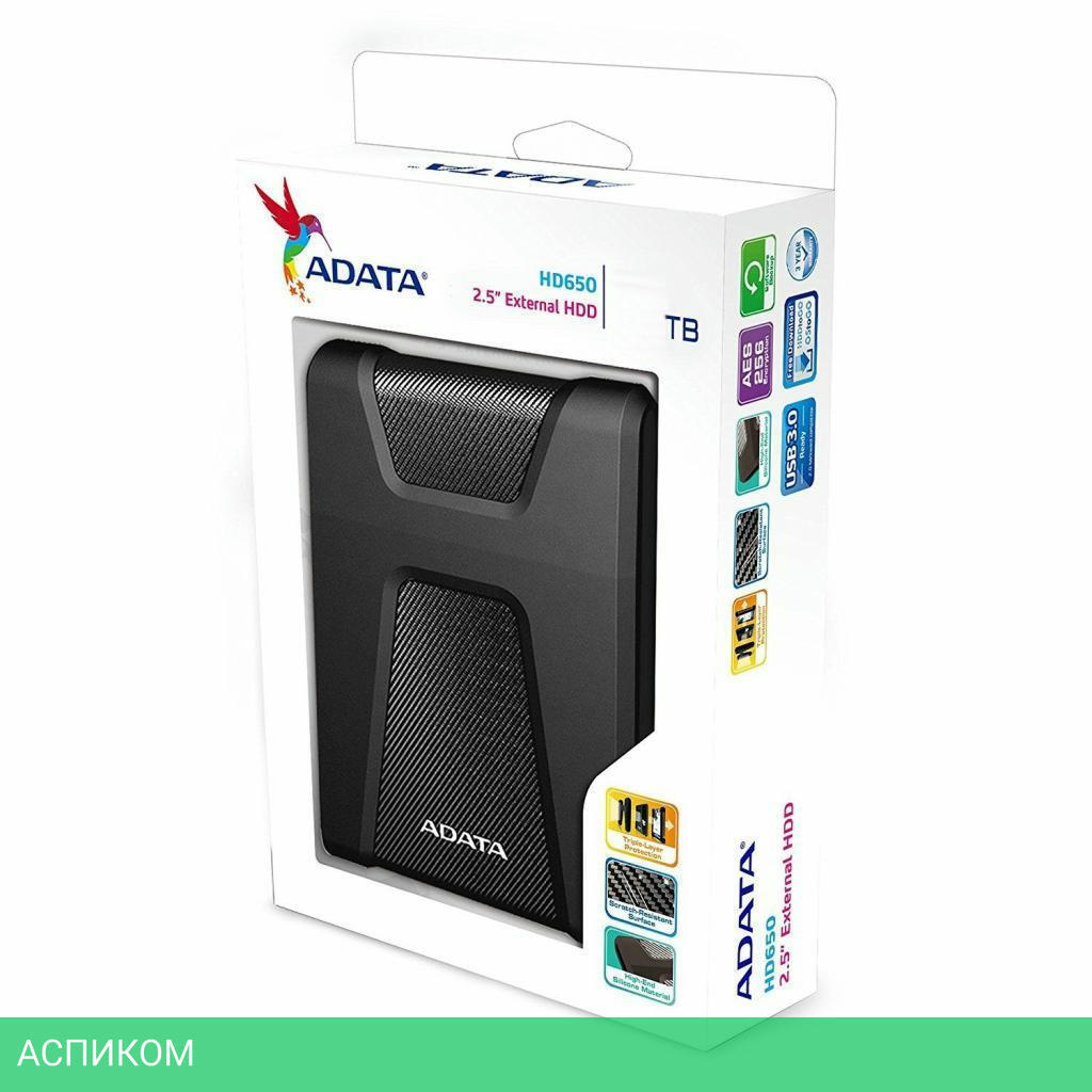 Внешний накопитель A-Data HD650 2Tb AHD650-2TU31-CBK черный/2.5"/USB 3.2 Gen1 Type-A (5 Гбит/с)/пластик, резина