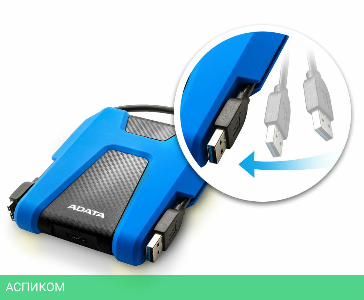 Внешний накопитель A-Data HD680 1Tb AHD680-1TU31-CBL синий/2.5"/USB 3.2 Gen1 Type-A (5 Гбит/с)/пластик, силикон